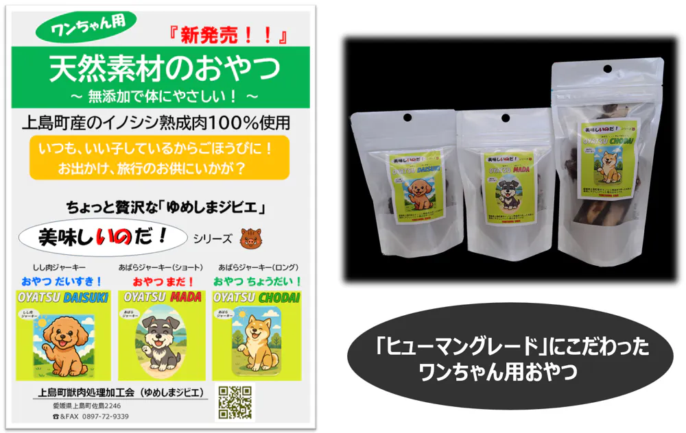 無添加の天然熟成イノシシ肉を使用しており、大切な家族の健康を考えて作られたおやつです。