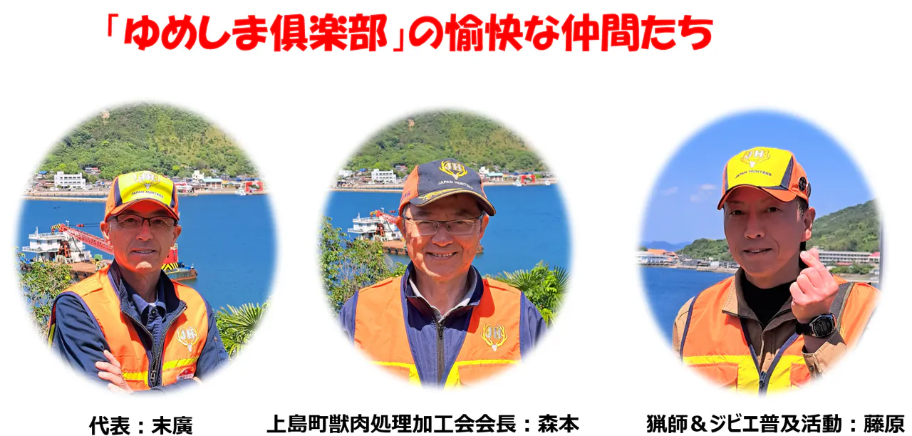 その思いを胸に、島の明日に情熱を注ぐキャンプ場の管理者と、町内唯一のジビエ処理加工施設の会長の3人で「株式会社 ゆめしま倶楽部」を設立しました。