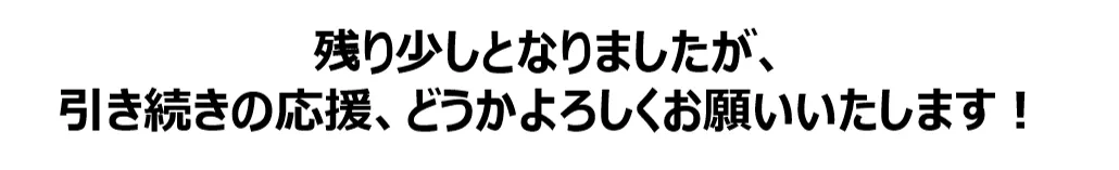 あと少しですが、温かいご支援と応援をよろしくお願いします。