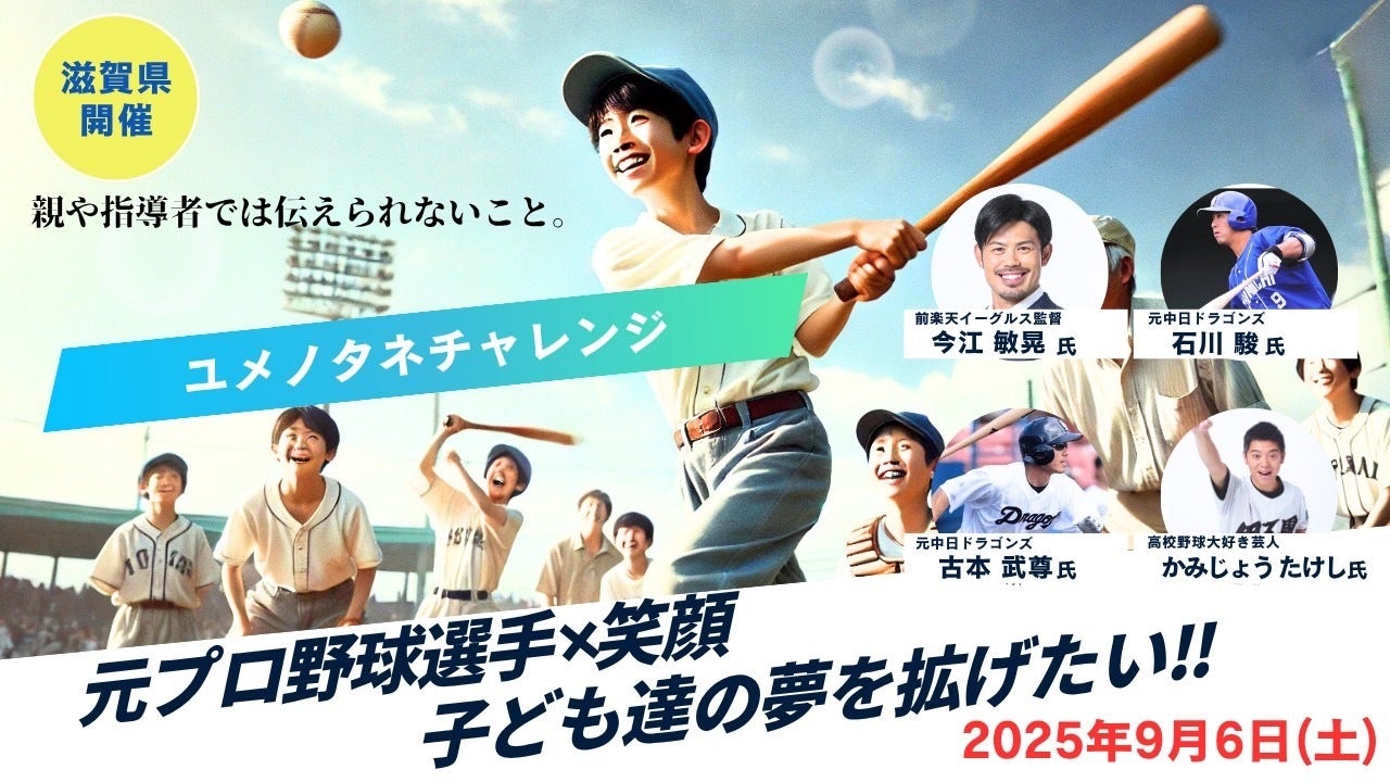 未来を担う子どもたちが「夢」という名の目標を持つサポートをするのが、私たち大人の役目だと感じています。野球人口の減少が問題視されている野球界を、元プロ野球選手の方々のエネルギーと共に、滋賀県の方々の熱いパワーと共に全力で盛り上げていきたいと考えています。1人でも多くの子どもたちの笑顔、そしてサポートしてくださる大人の方々の笑顔を作るために、ご支援・ご協力のほどよろしくお願いします!