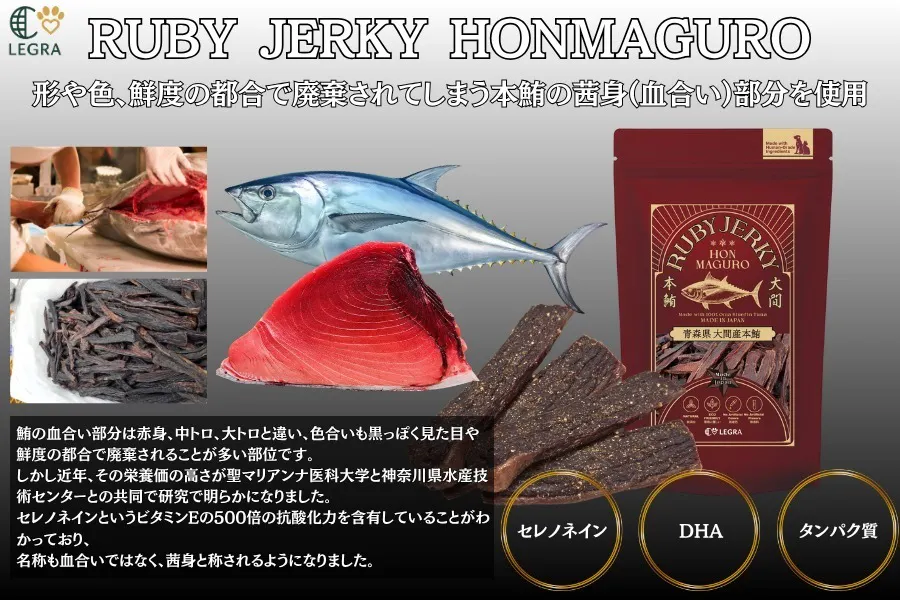 マグロの栄養価の高い部分を使いたい!それを実現するのが青森県大間産の本鮪の血合いジャーキーです!