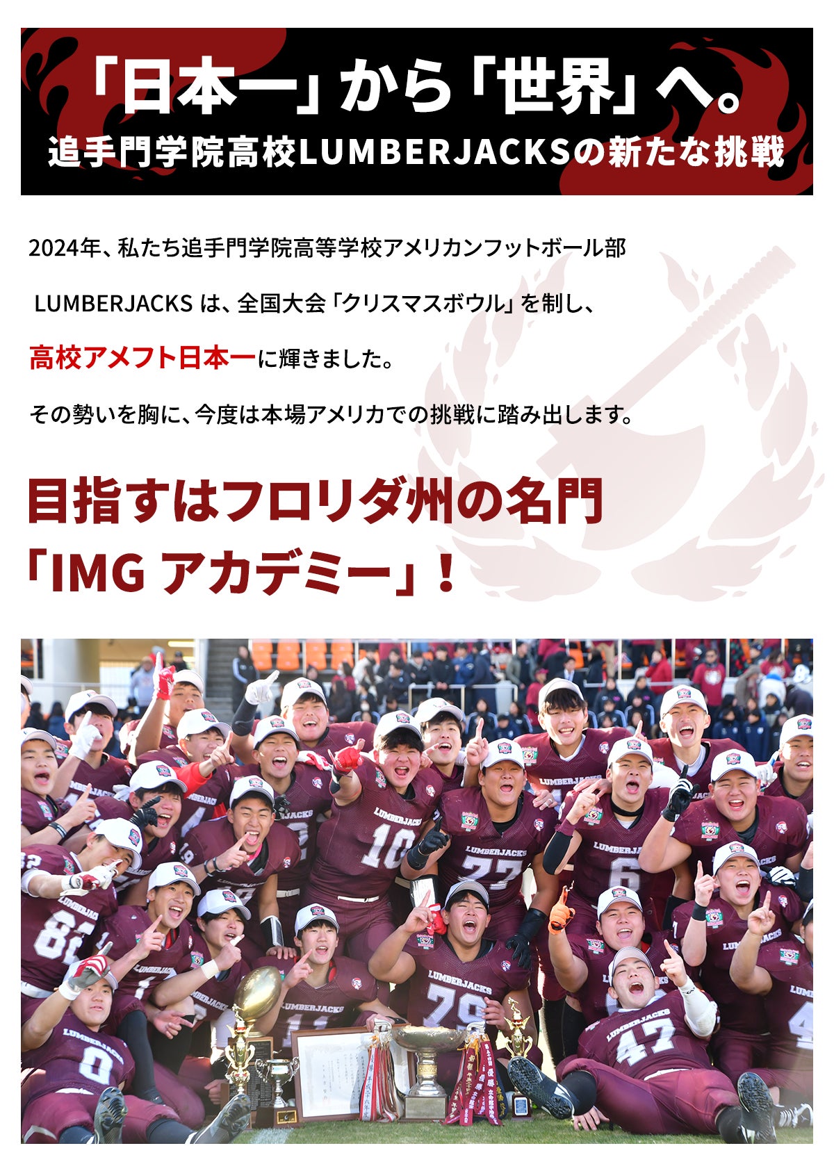 追手門学院高校スポーツコースとしてもLUMBERJACKSとしても