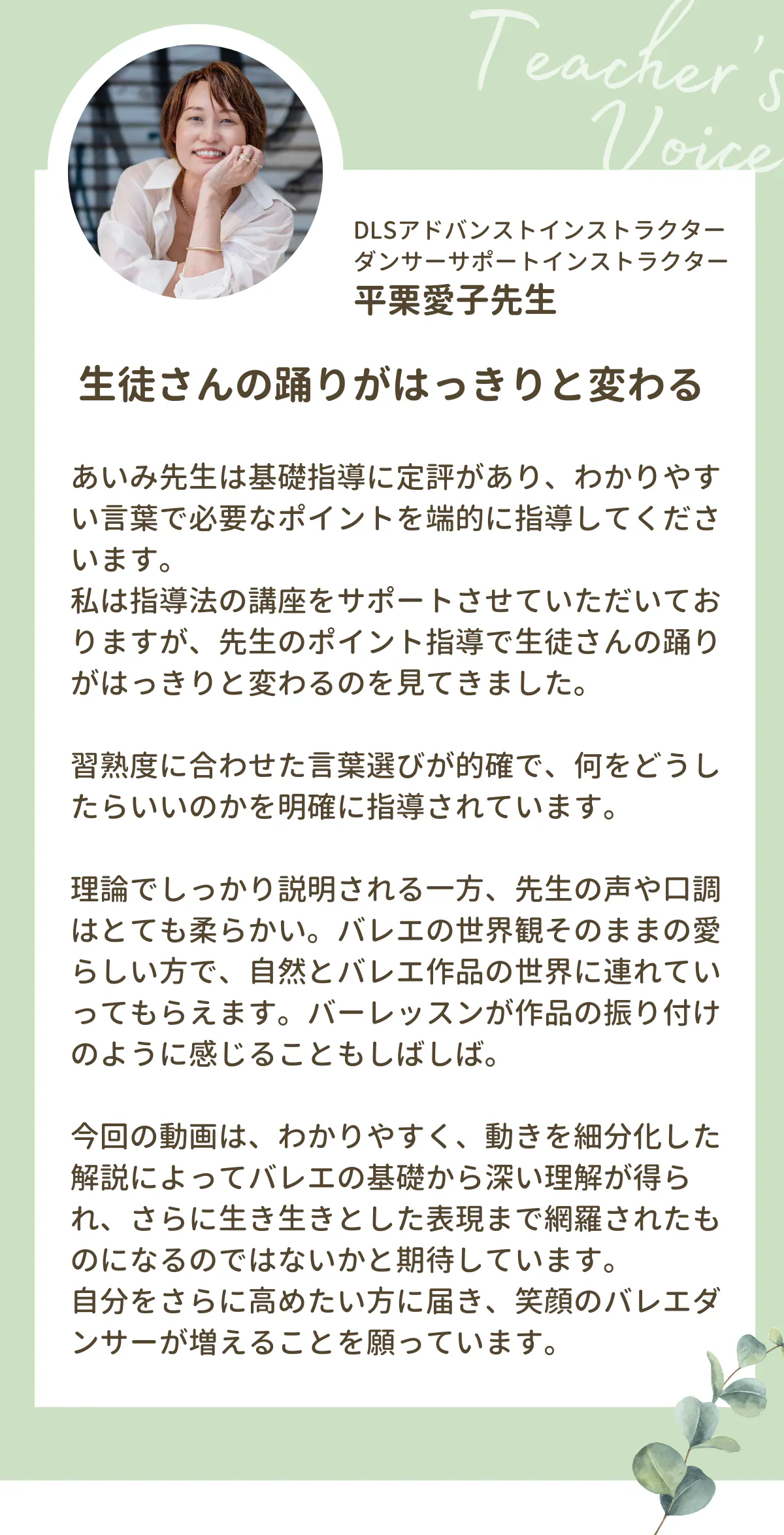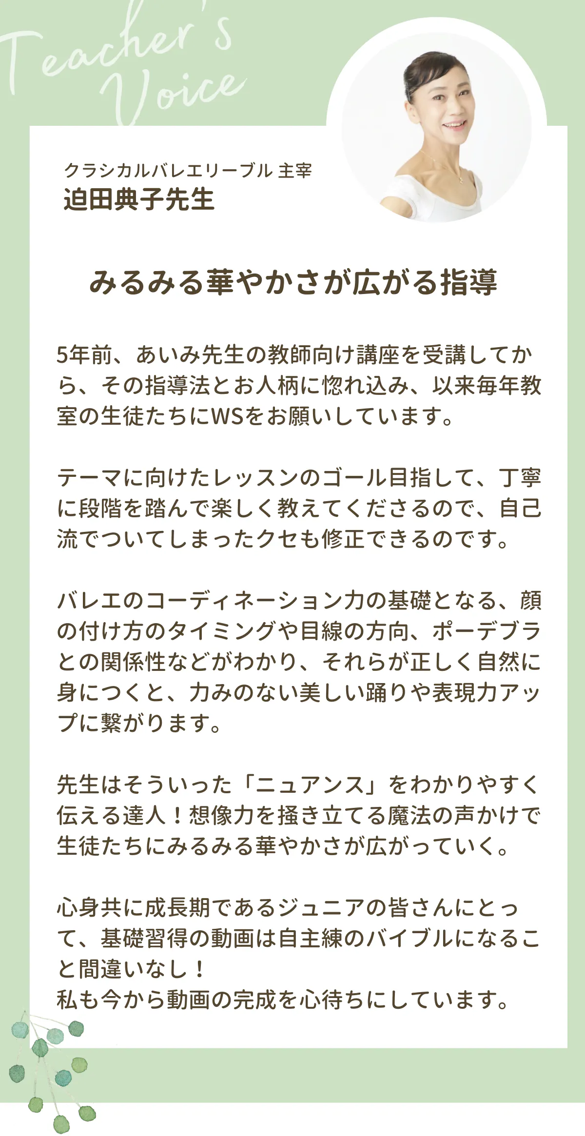 「あいみ先生にヴァリエーションを教えて頂き何度も救われました。」