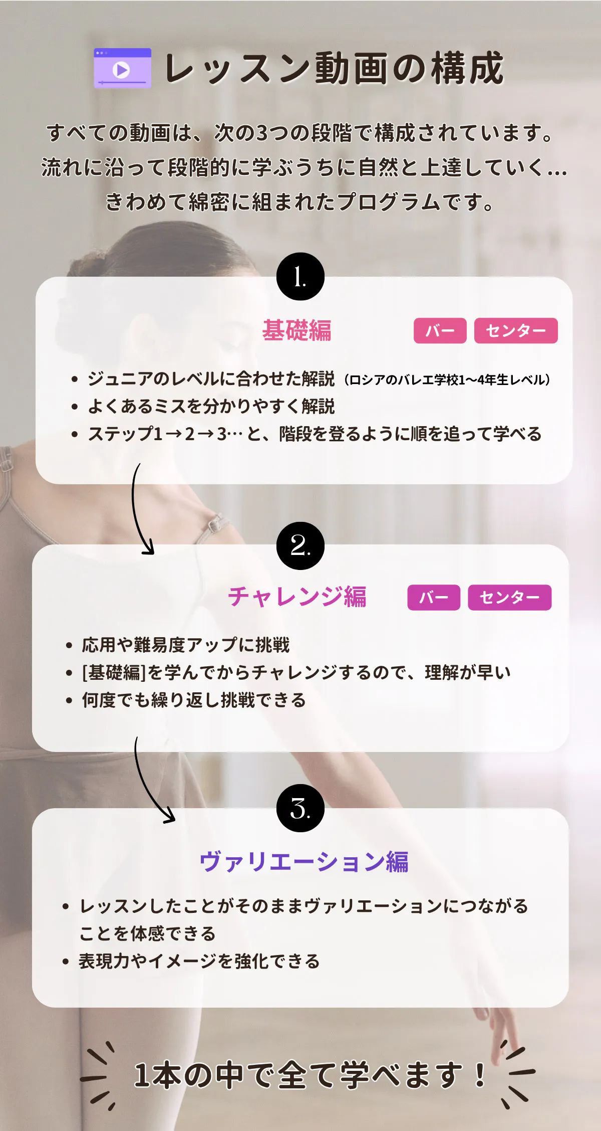 1つのヴァリエーションを踊れるようになるプロセスを、1本の動画にまとめるのは簡単なことではありません。