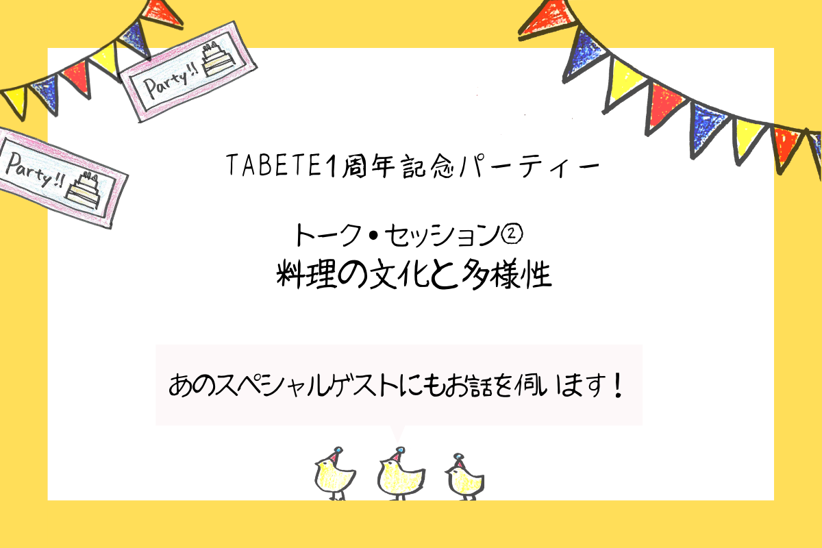 今回のパーティーでは、この1年TABETEに関わって下さった方々、“食”の課題や“食”そのものに強い関心を持っている方々が100人近く参加される予定です。
