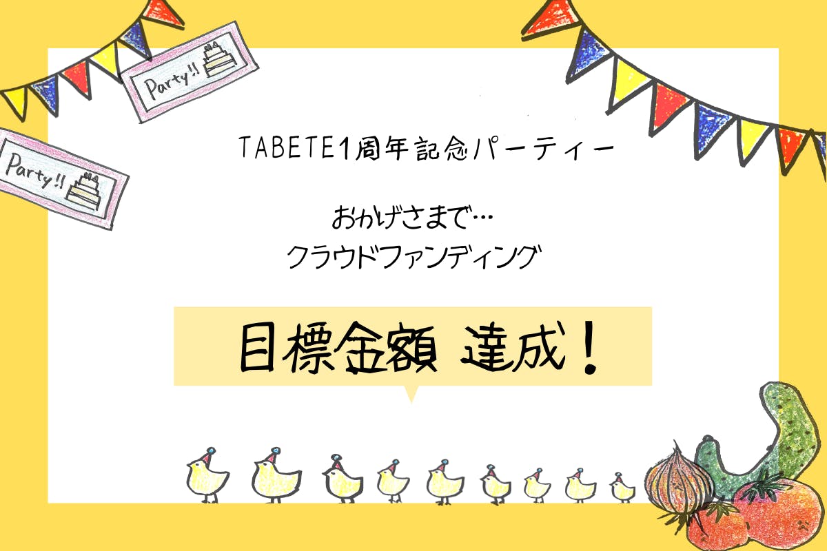 【祝・サクセス!】「フードロス削減を目指す【TABETE】の1周年をみんなでお祝いしたい!」目標金額を達成しました!