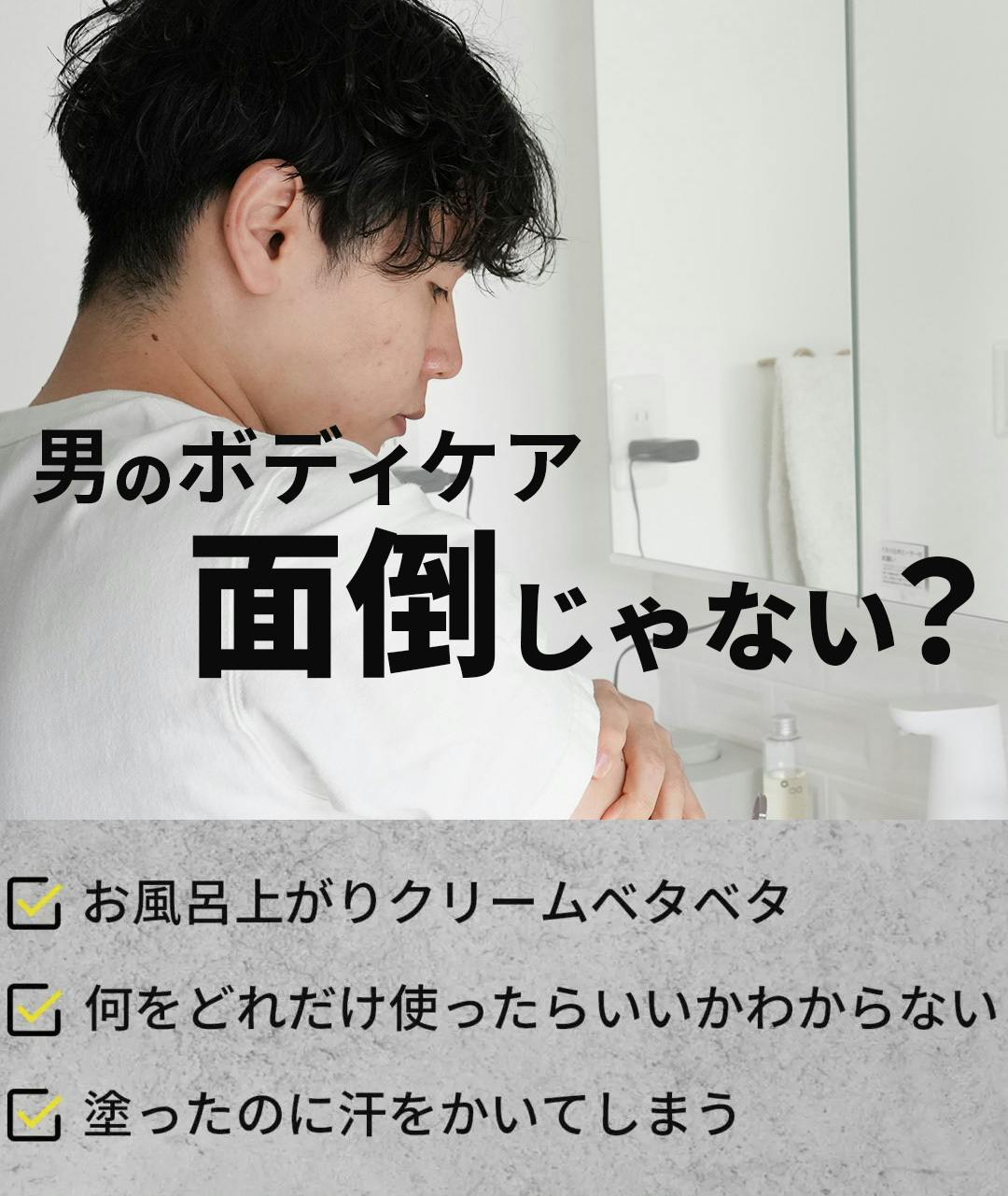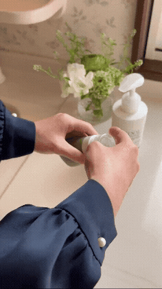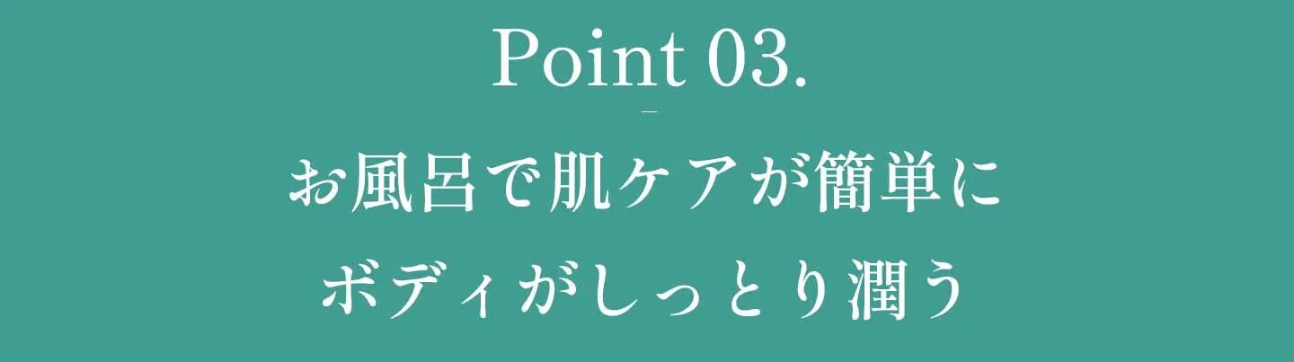 全身の汗や汚れをざっと洗い流し、セラムを適量手に取り、全身にやさしく馴染ませます。少し置いてから、普段のソープで体を洗います。普段どおりに湯船に浸かるかシャワーで流し、タオルで拭きます。