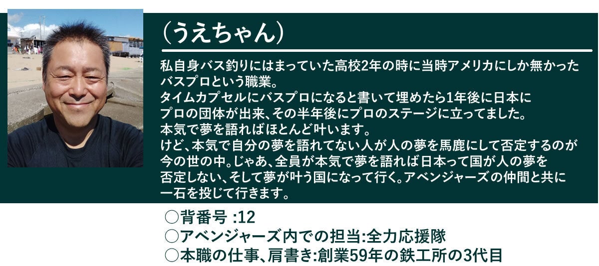 自己紹介:子供の頃から釣り好きで19〜27歳までプロとして釣りに人生賭けてた、だいぶクレイジー!釣りをするために家業の鉄工所に入社して早40年、自社製品のゴルフ、野球の自宅用練習設備を販売しながら、今年3月の火事で損傷した会社の復旧に汗を流してます。夢はゴルフで85歳の時にスコア85でラウンドしてくるというエージシュート!