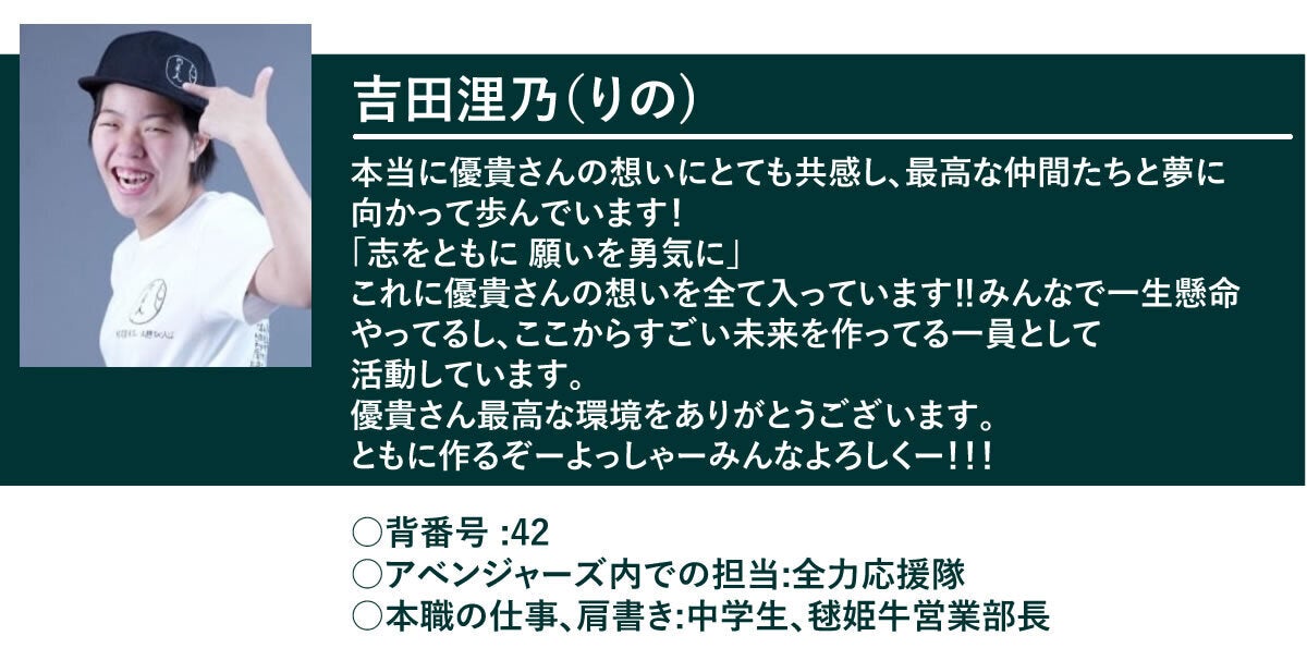 DREAM AVENGERS代表を務めております、吉澤 優貴と申します。