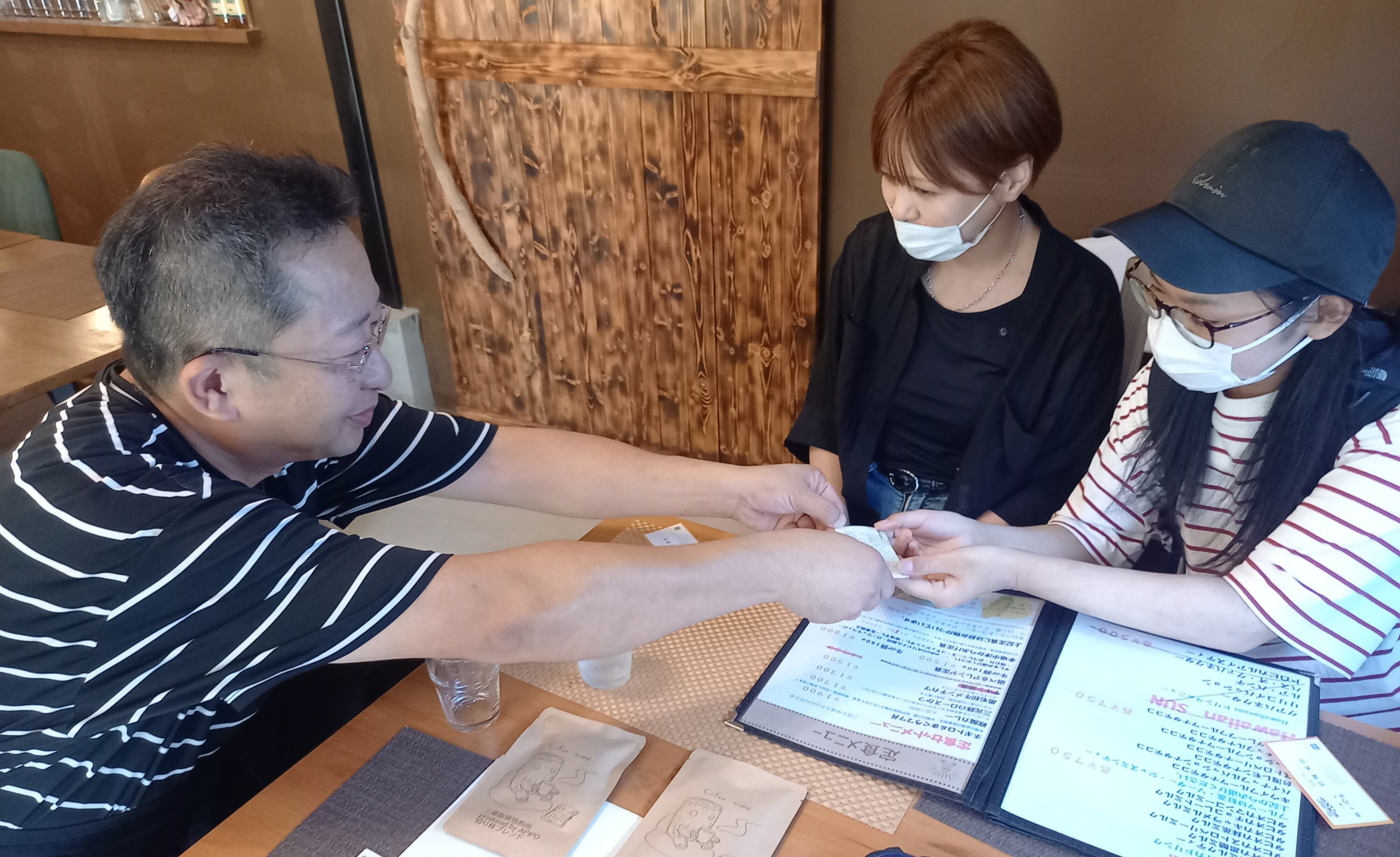 ➡子どもにハンドドリップ体験をしてもらい、親に飲んでもらう
