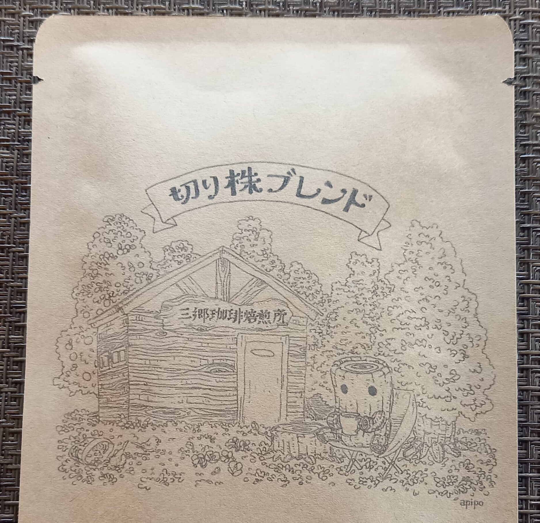 ご支援の返礼品としてapipoさんがデザインした下記のドリップバッグに合わせて、三郷珈琲焙煎所で「切り株ブレンド」を新たに作ってもらい、採用することになりました。
