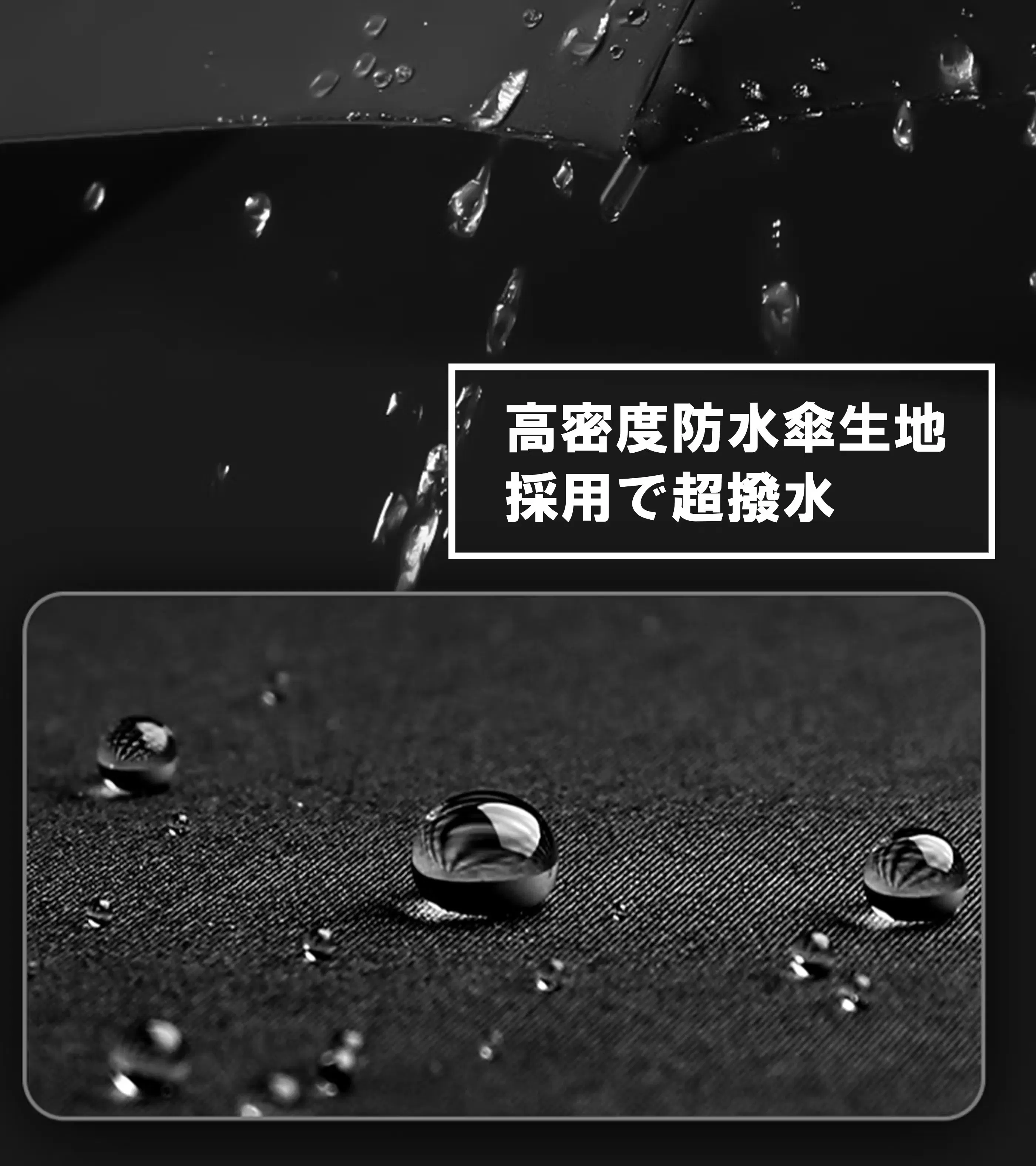 高密度防水傘生地を採用し、傘の性能の本質である撥水性にもこだわりました。