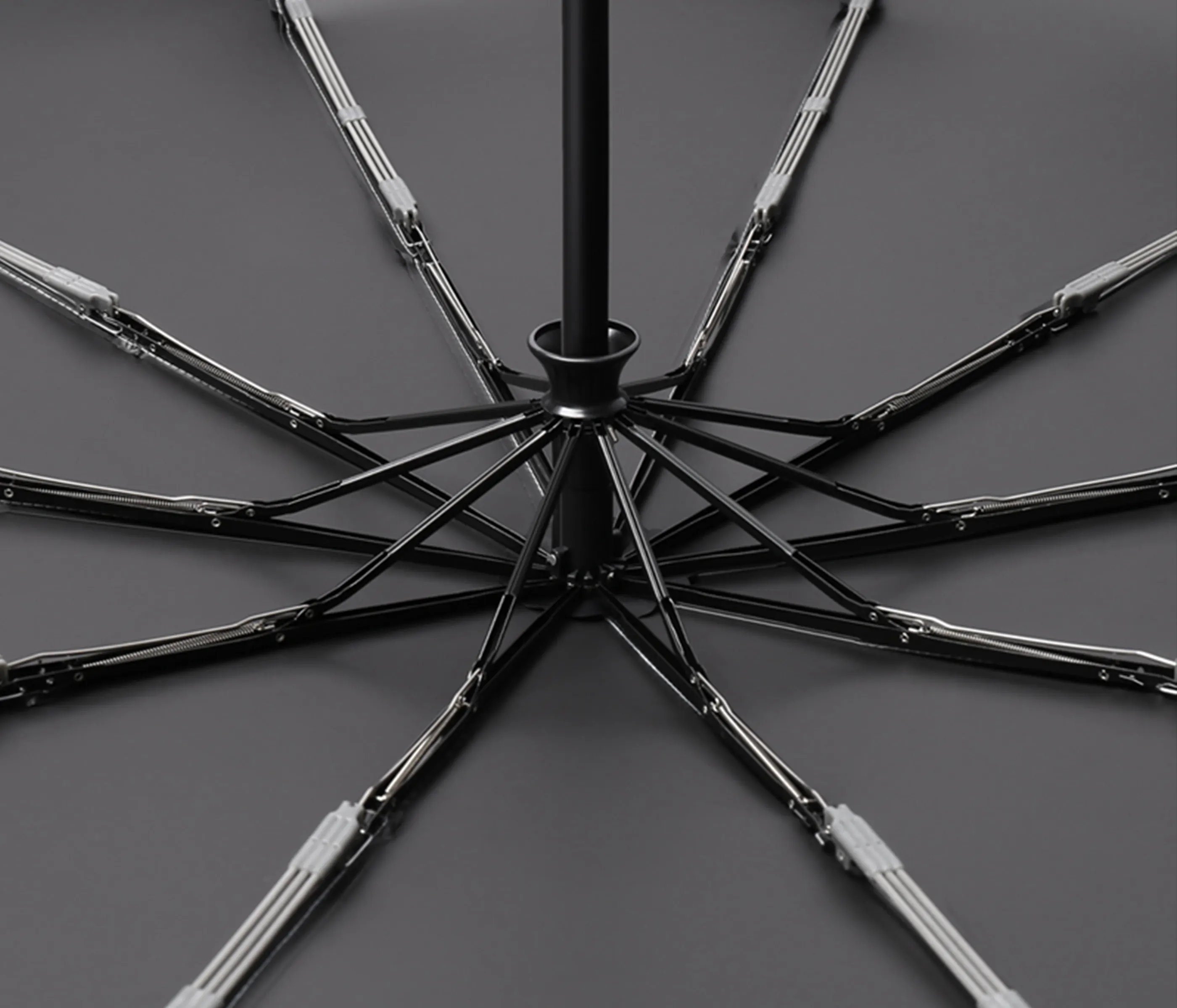 傘の骨格が錆びてしまった経験はありませんか?雨水にさらされる傘はさびやすい環境にあります。錆びないように、「中塗り黒焼き塗装」を採用しました