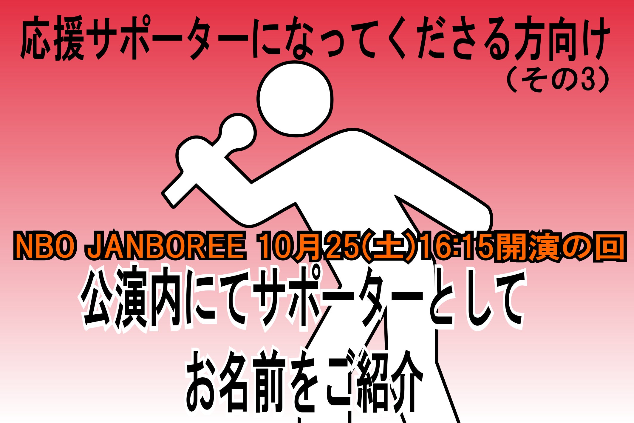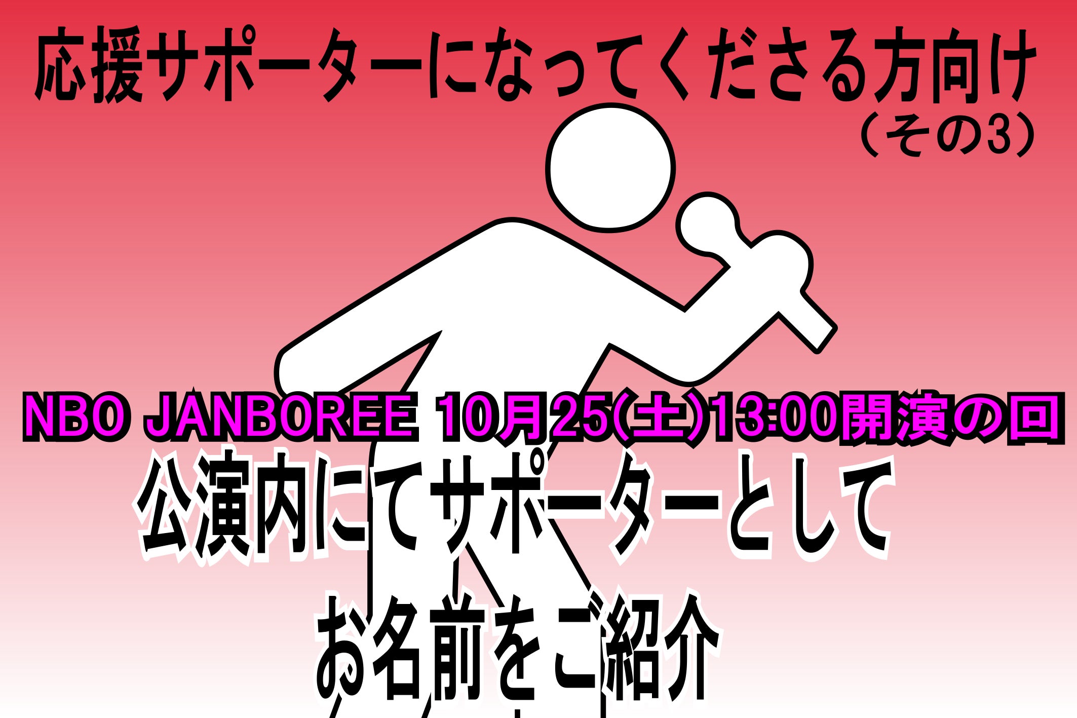 「NBO JANBOREE」2025年10月25日(土)13:00公演内にてMCがサポーターとして お名前またはニックネームをご紹介いたします。
