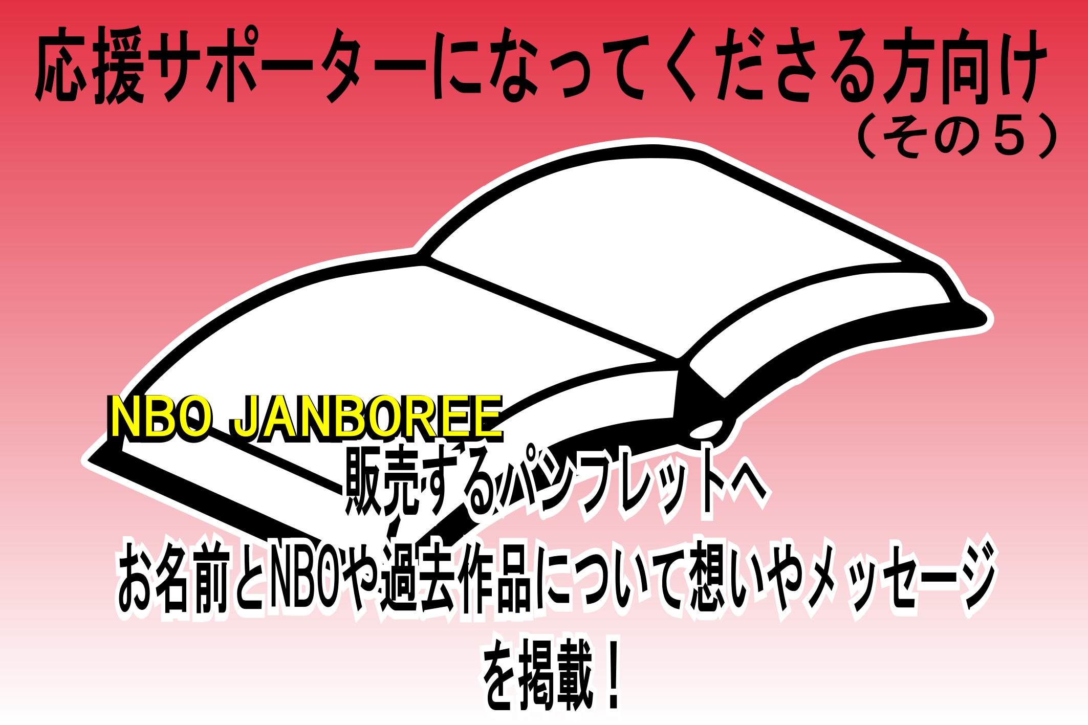 今回は記念企画 の第一弾となります「NBO JANBOREE」の成功に向けてご支援を募りたく思っております。その中で、