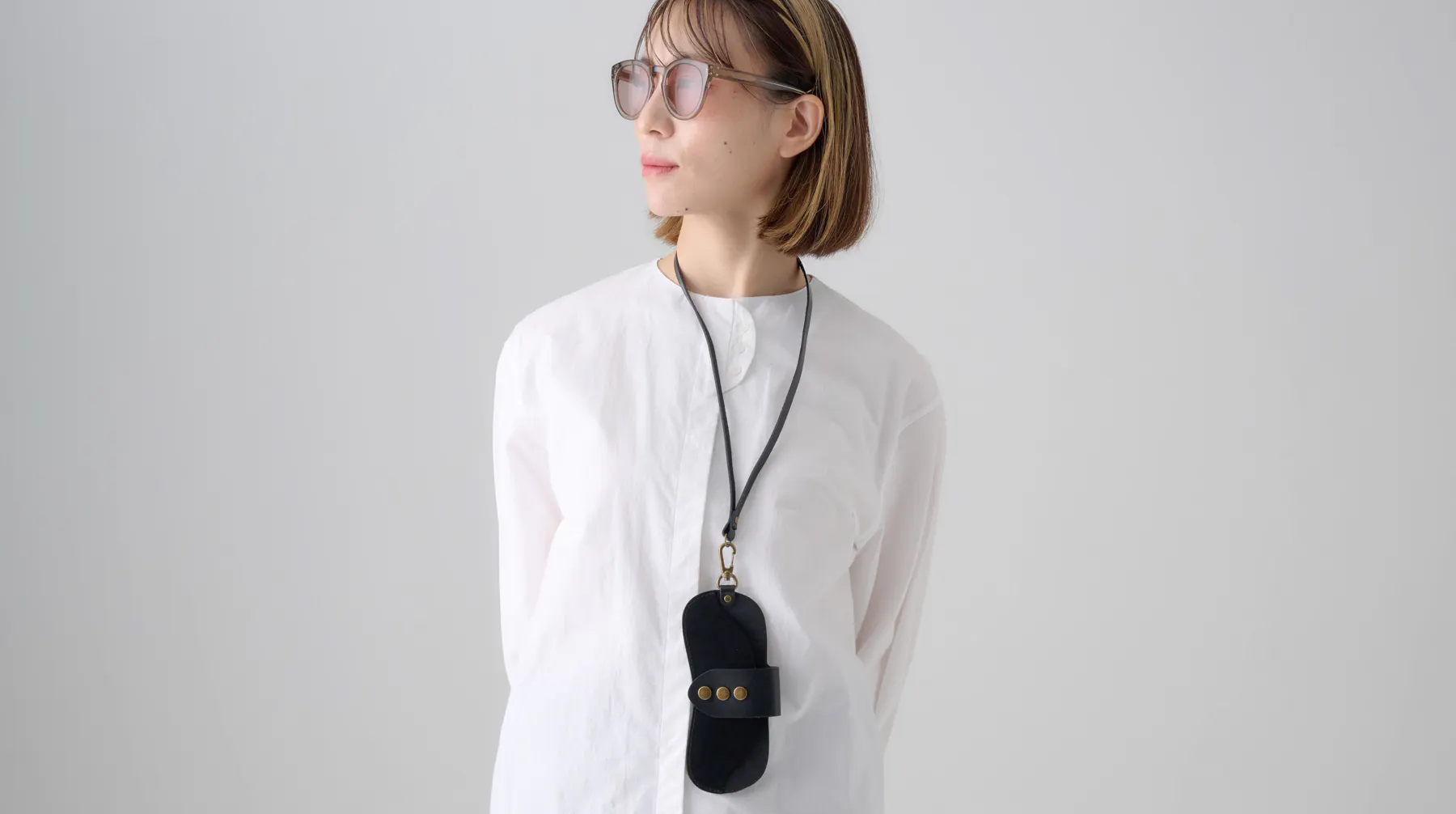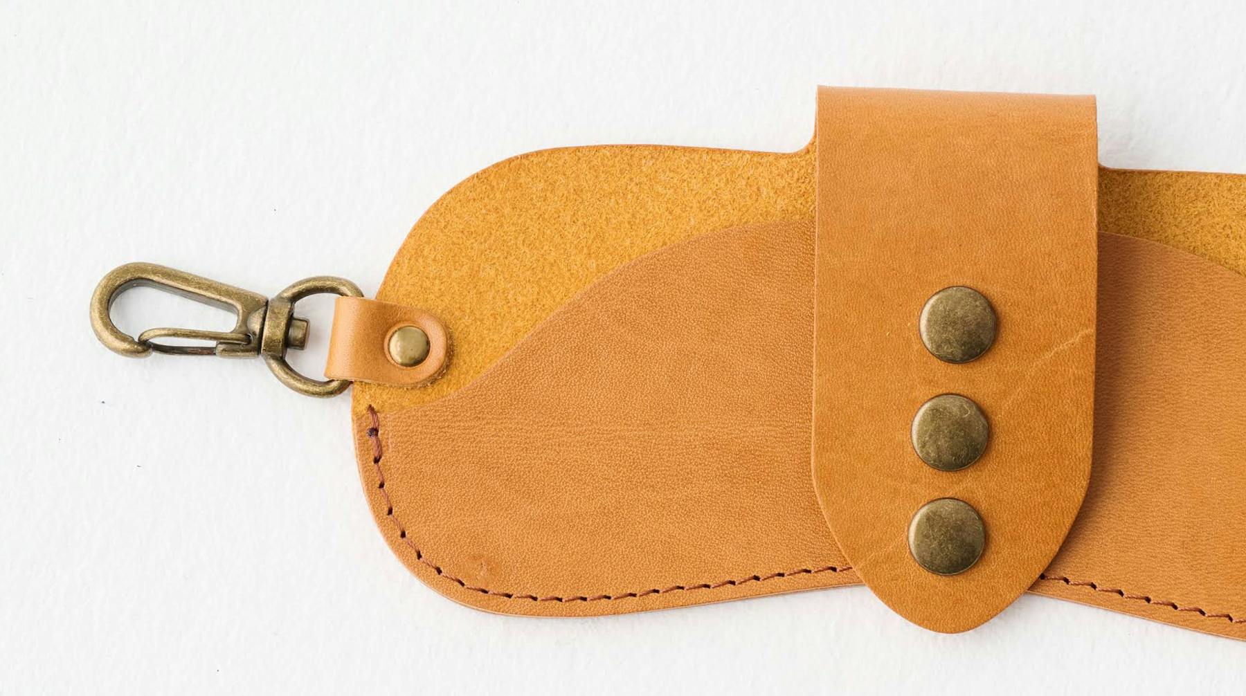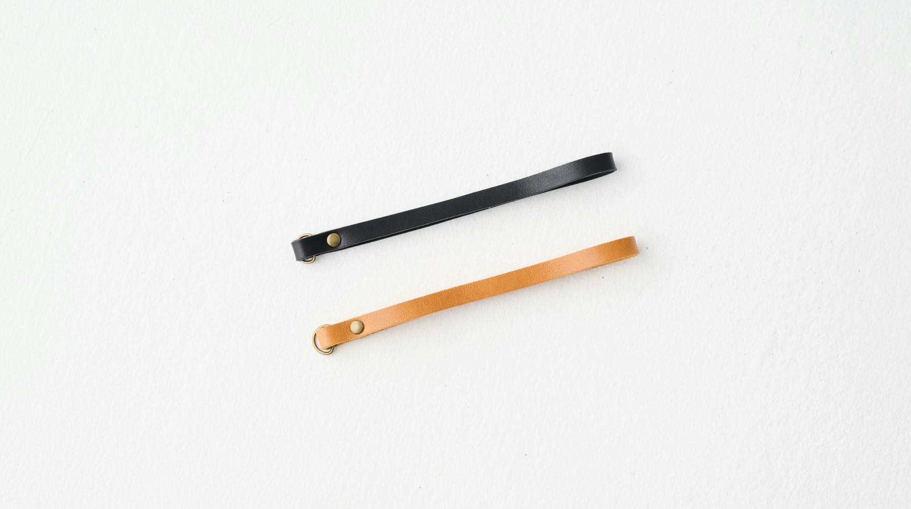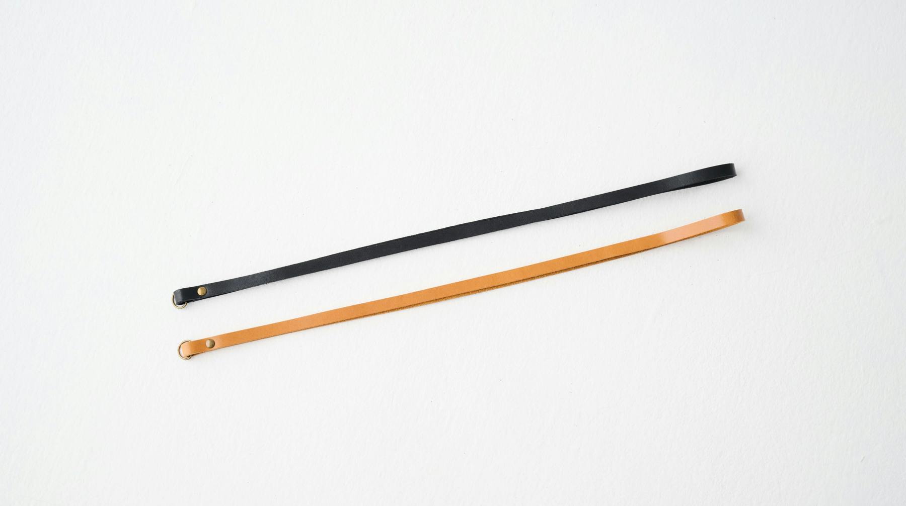 付属のストラップは2種類の長さからお選びいただけます。チャームとして使える「ショートストラップ」と、首から下げて使う「ロングストラップ」、どちらもboat本体と同じレザーでお作りします。
