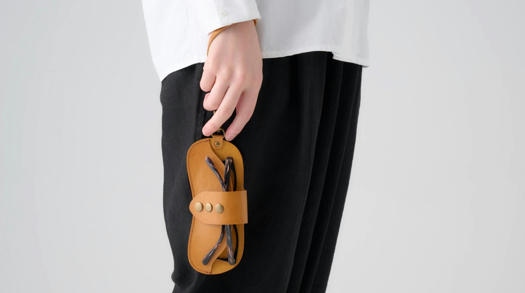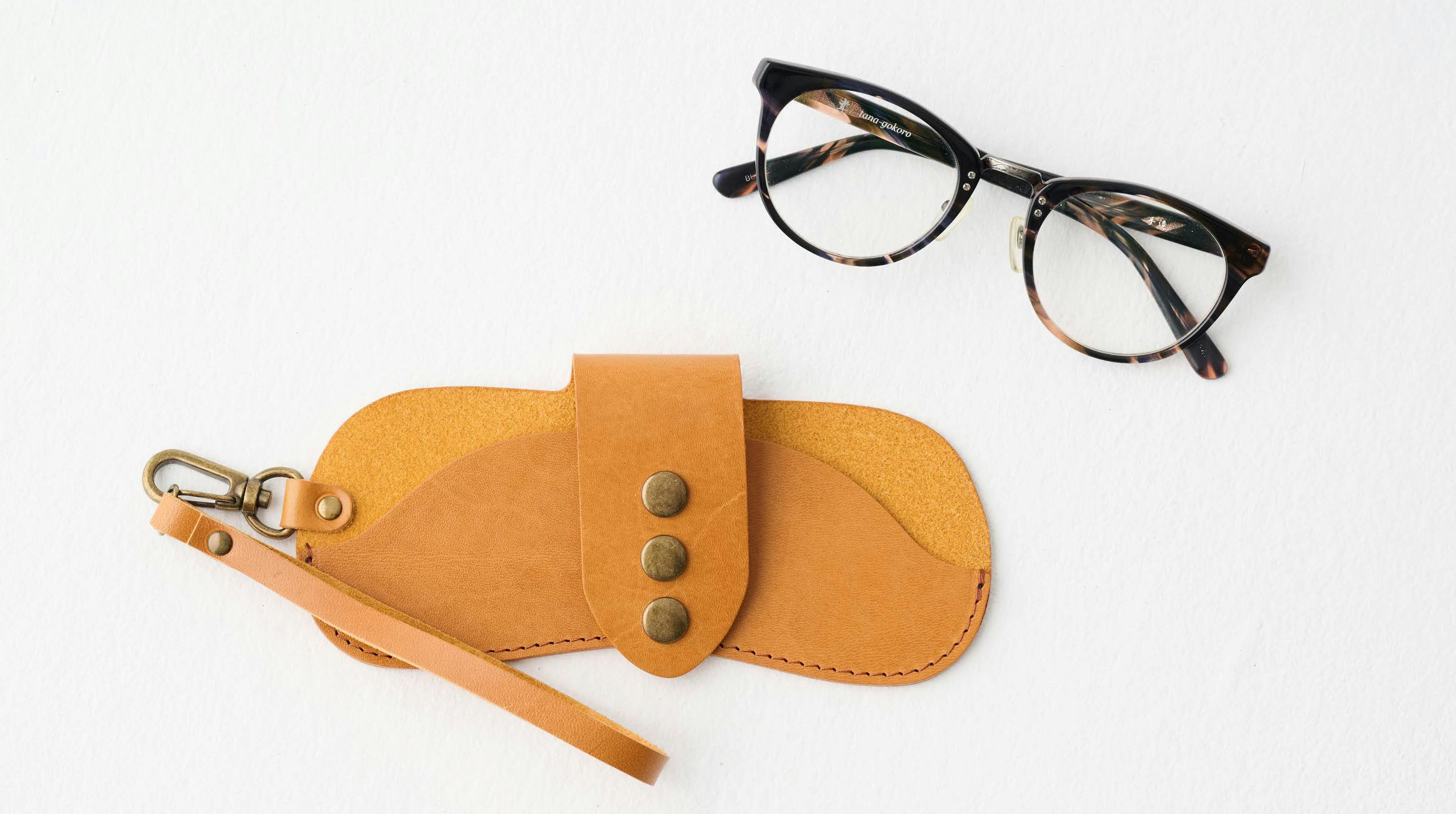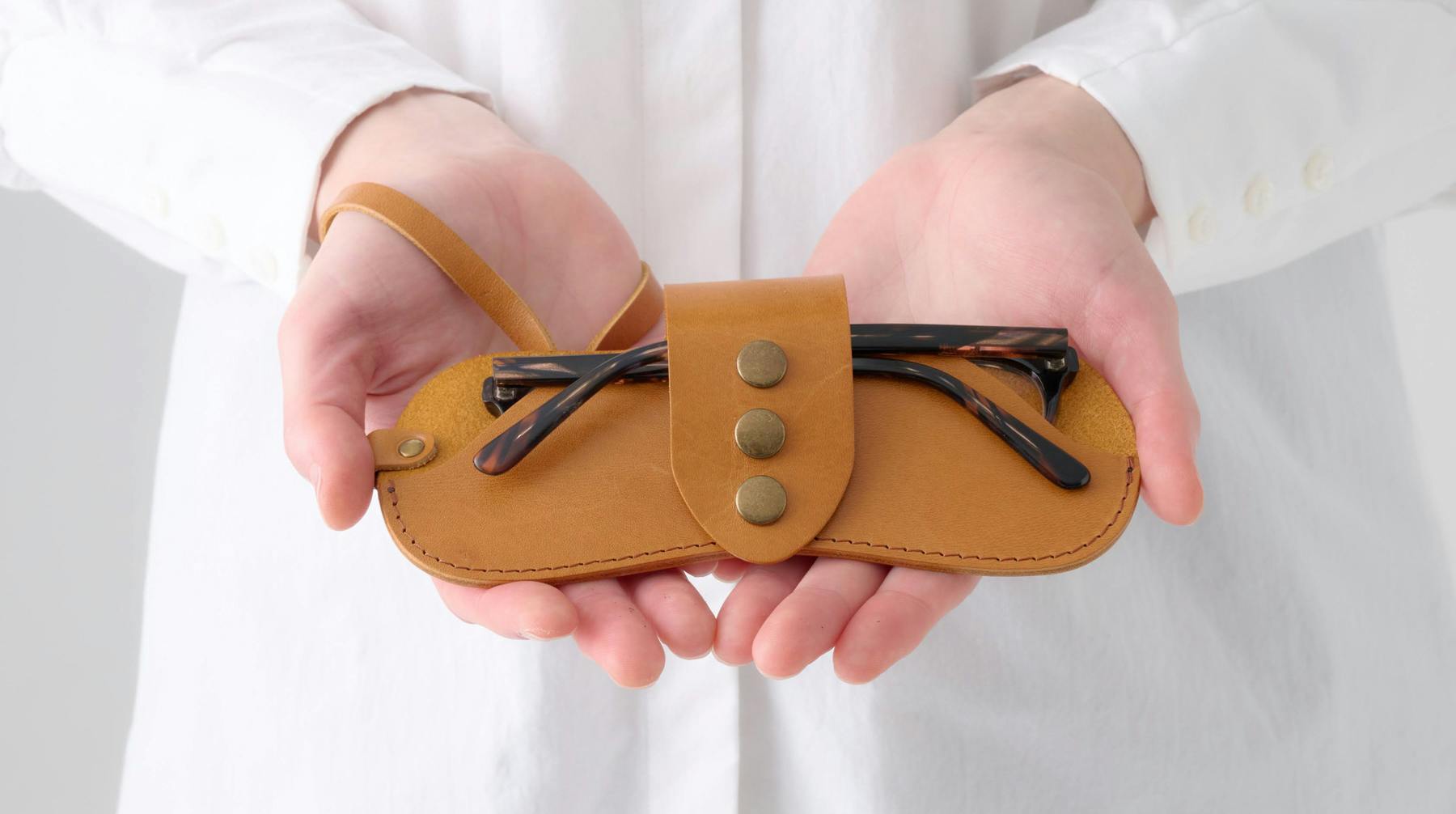 「あれ?メガネ、メガネ…」をなくしたい。メガネやサングラス、老眼鏡も使いたい時にすぐ使えるストラップ付きの本革メガネケースを制作しました。ファッションアイテムとしても活躍します。創業74年、大阪老舗ランドセルメーカーの職人が一つひとつ手作業で製作します。