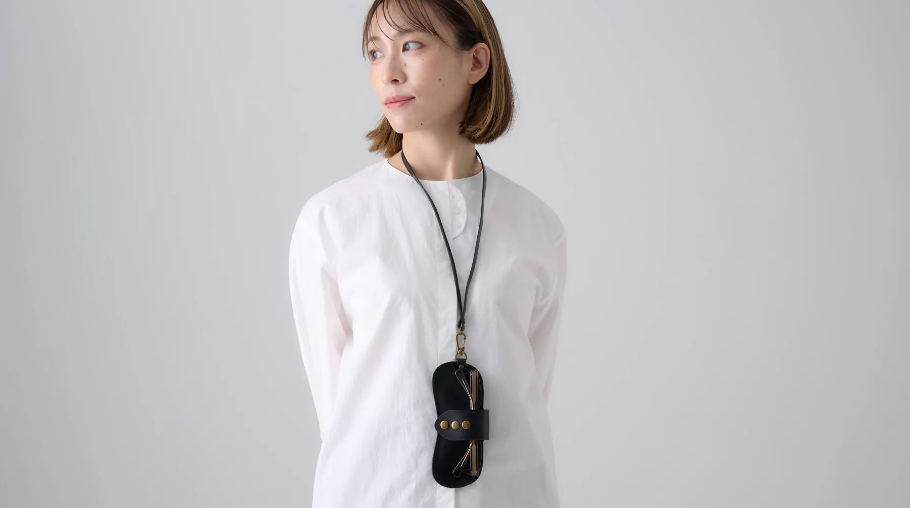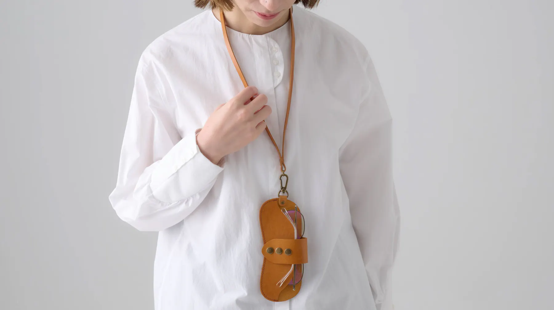 ロングタイプのストラップは首から下げるのにちょうど良い長さ40cm。どんな服装にも馴染むシンプルなデザインなので、老若男女問わず長く愛用いただけます。コーディネートのアクセントにもなり、メガネライフがさらに快適に楽しくなるでしょう。
