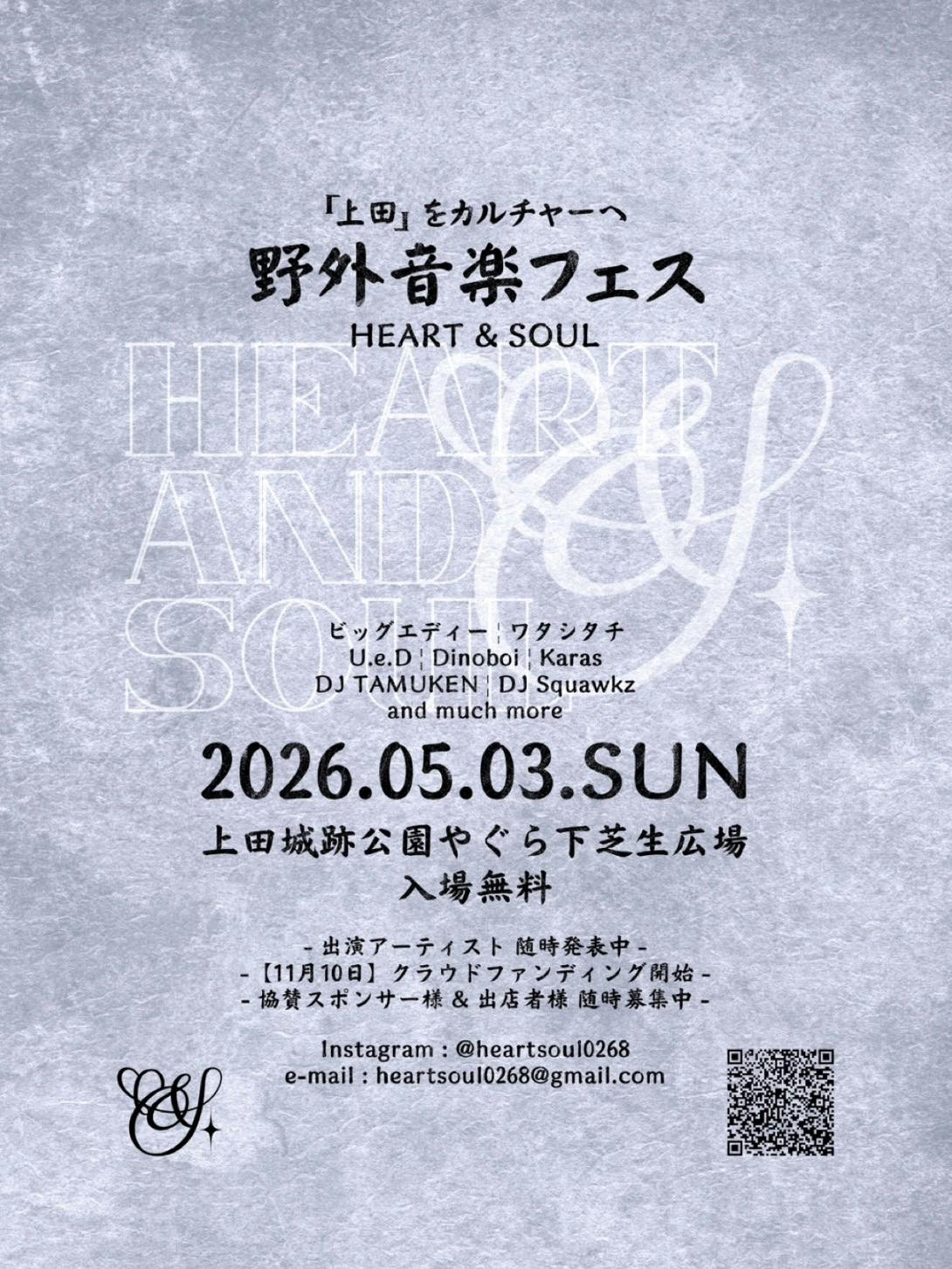 「HEART & SOUL」は、上田らしい温かさと、人のつながりを大切にしながら、音楽や食を通じて笑顔があふれる空間を創出することを目的としています。