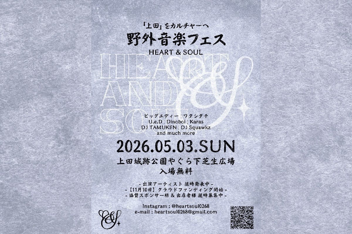 「HEART & SOUL」は、上田らしい温かさと、人のつながりを大切にしながら、音楽や食を通じて笑顔があふれる空間を創出することを目的としています。