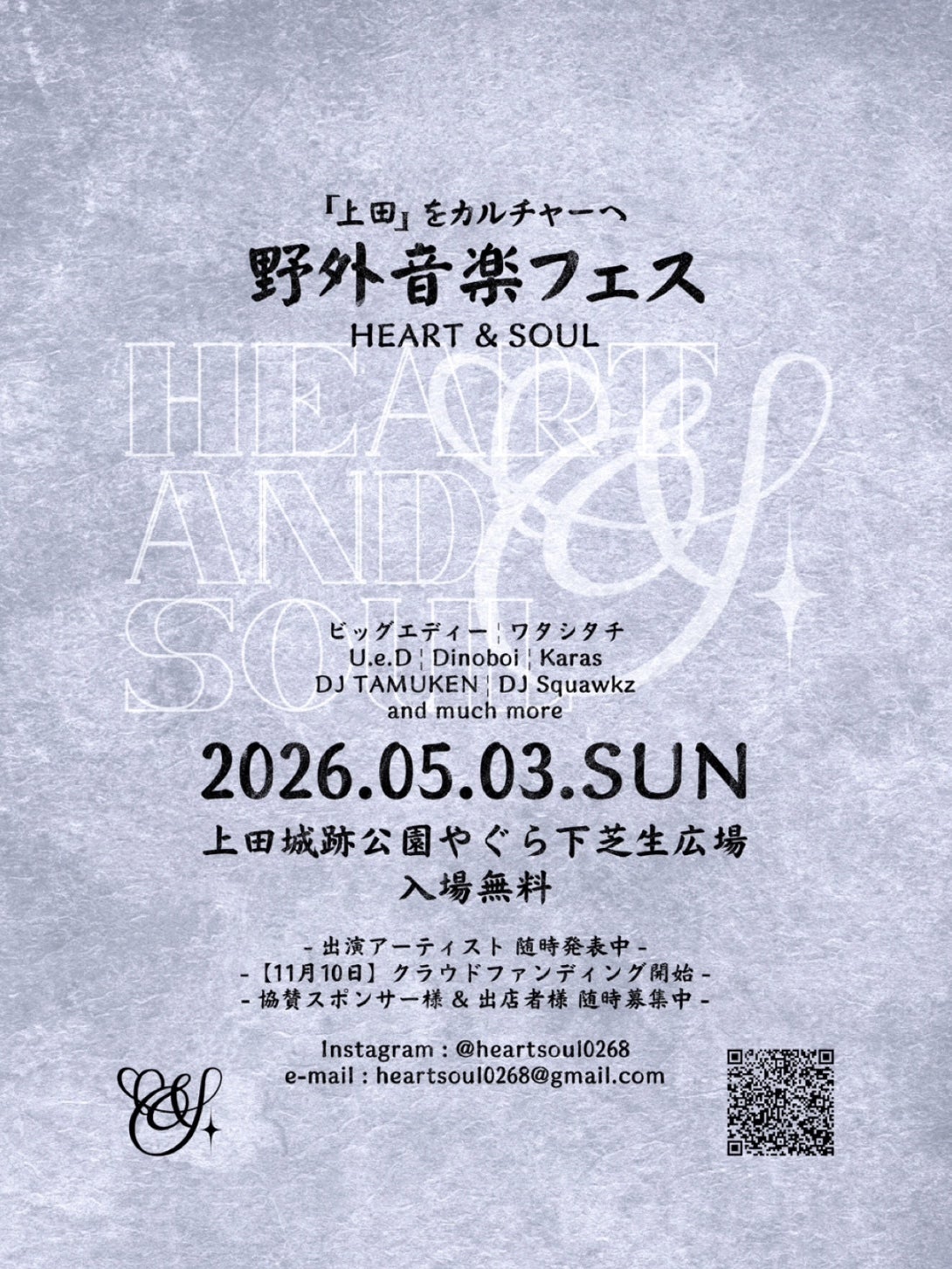 「HEART & SOUL」は、上田らしい温かさと、人のつながりを大切にしながら、音楽や食を通じて笑顔があふれる空間を創出することを目的としています。