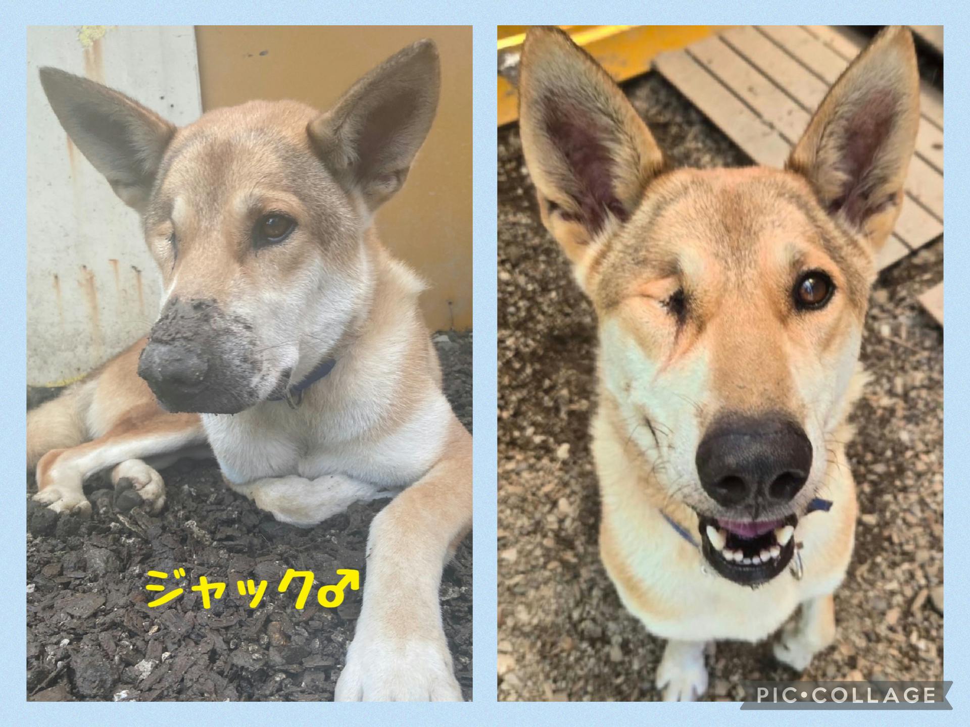 目の病気を抱えていたジャックはたくさんの餌と一緒に車からおろされて遺棄された犬でした。
