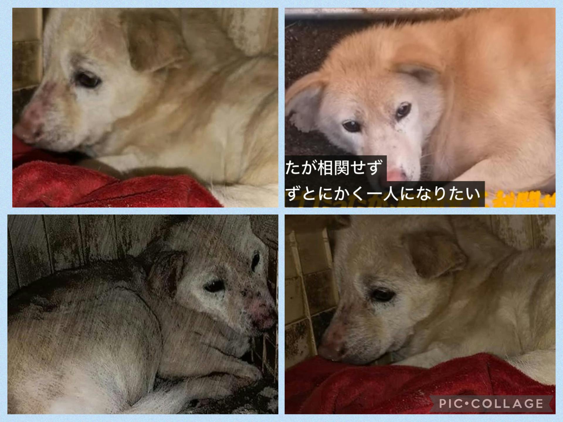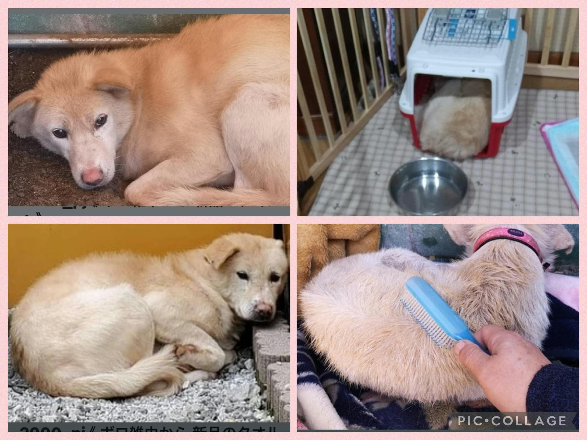 5年前、写真左側の愛波は保健所でひどい皮膚病でうなだれていました。