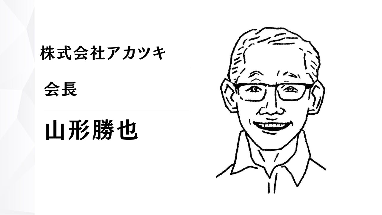 はじめまして。株式会社アカツキ 会長の山形勝也と申します。