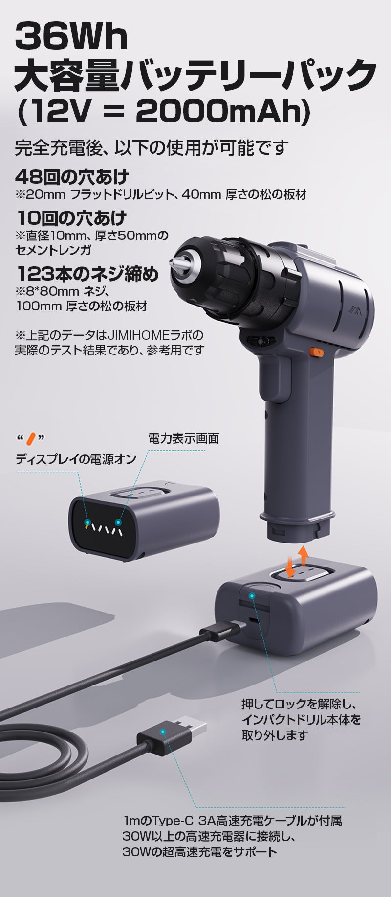 もっとパワフルでしっかりと、そして簡単に穴あけ、ねじ締めができる電動ドリルはないかと思っていたところ、JIMIBOX X1-Jに出会いました!
