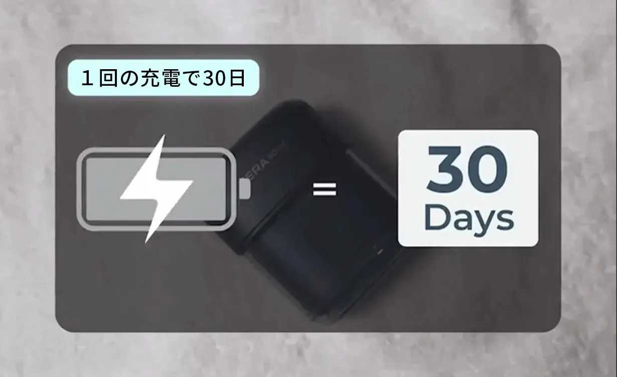 一度の充電で最大30日間使用可能。頻繁な充電は不要で、いつでも頼れるパフォーマンス。