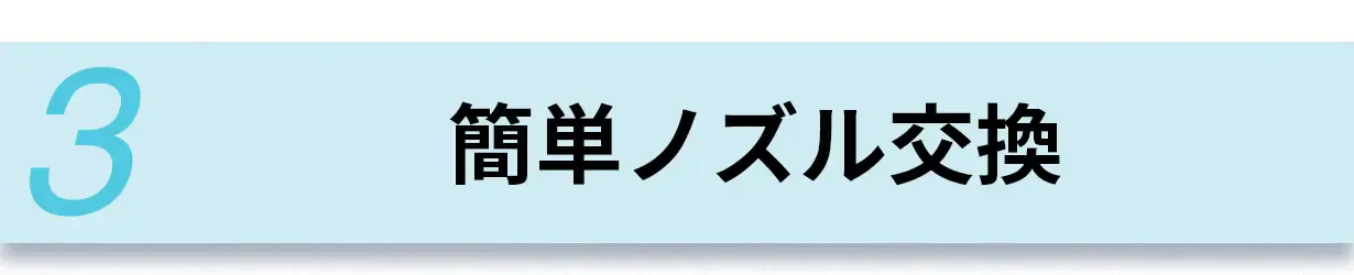 わずか1秒でノズル交換が可能。スピーディーに出し入れできるので、手間なく簡単にご利用いただけます。