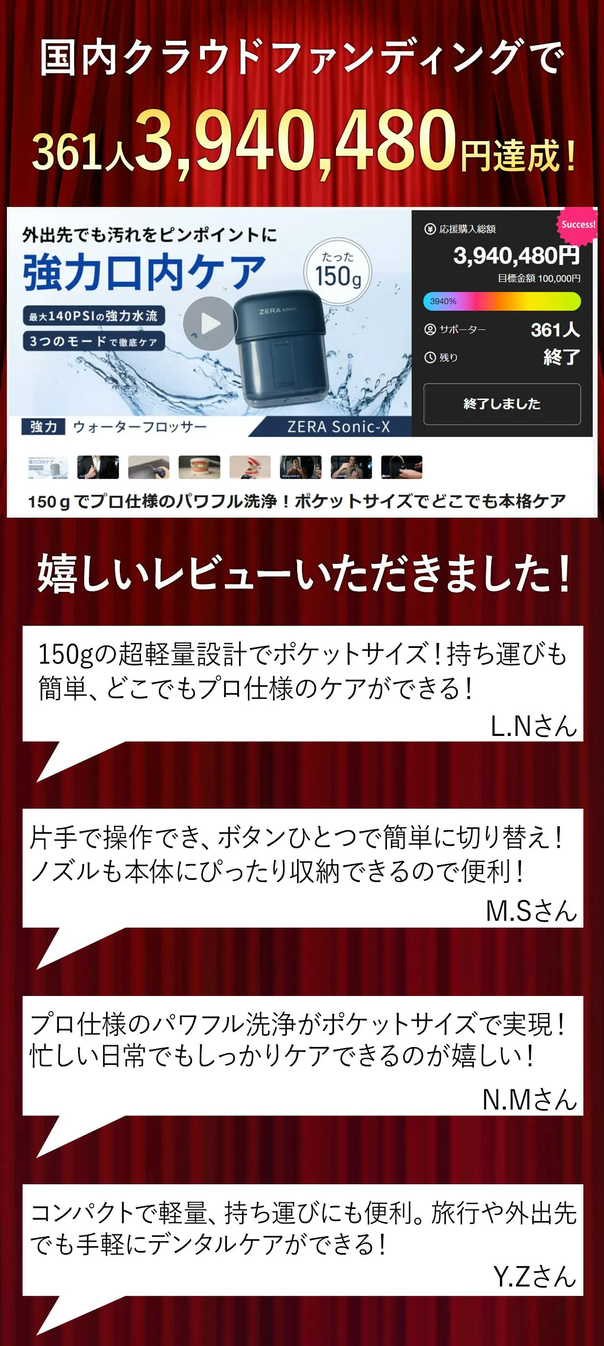 最後に、本製品を手に取った皆様に喜んでもらえるよう、 チームメンバー一同心を込めて対応していきますので、 支援よろしくお願い致します。