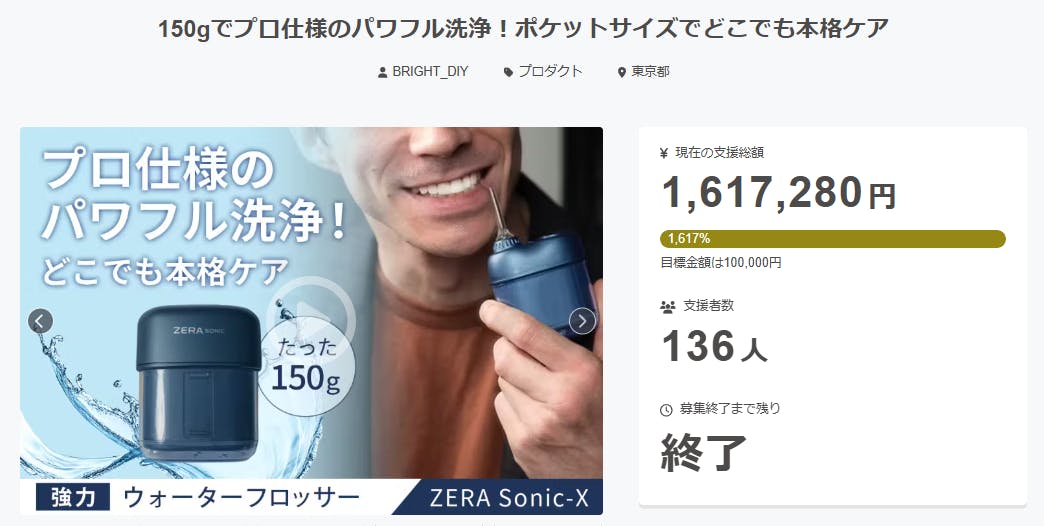 2025/10/01 01:06ご支援者様、150gでプロ仕様のパワフル洗浄!ポケットサイズでどこでも本格ケアにご興味をお持ちいただきありがとうございます。プロジェクト開始から39日目で136人ものご支援者の方々より支援頂き、無事プロジェクト終了を迎えることが出来ました。早速皆様のリターンを2025年10月末にお届けできるよう準備を始めております!皆様にご満足いただけるリターンをお届けできるよう、全力で取り組んで参りますので引き続き、「「150gでプロ仕様のパワフル洗浄!ポケットサイズでどこでも本格ケア」をよろしくお願い致します。BRIGHTチーム もっと見るGizmodoでの掲載ページ紹介!