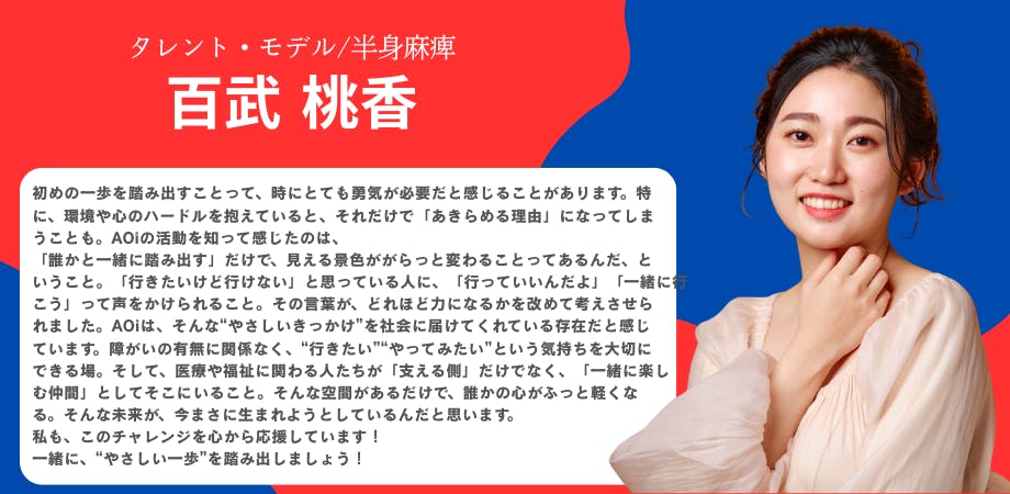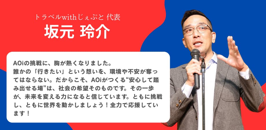 旅行は、誰かの心を動かし、外に出るきっかけにもなります。消費や就労、経済活動につながる可能性も秘めています。だからこそAOiは、障がい当事者や医療・福祉・介護従事者だけでなく、私たち一人ひとりの「生きやすさ」や、日本社会の温かさを育む一助になれたらと思っています。