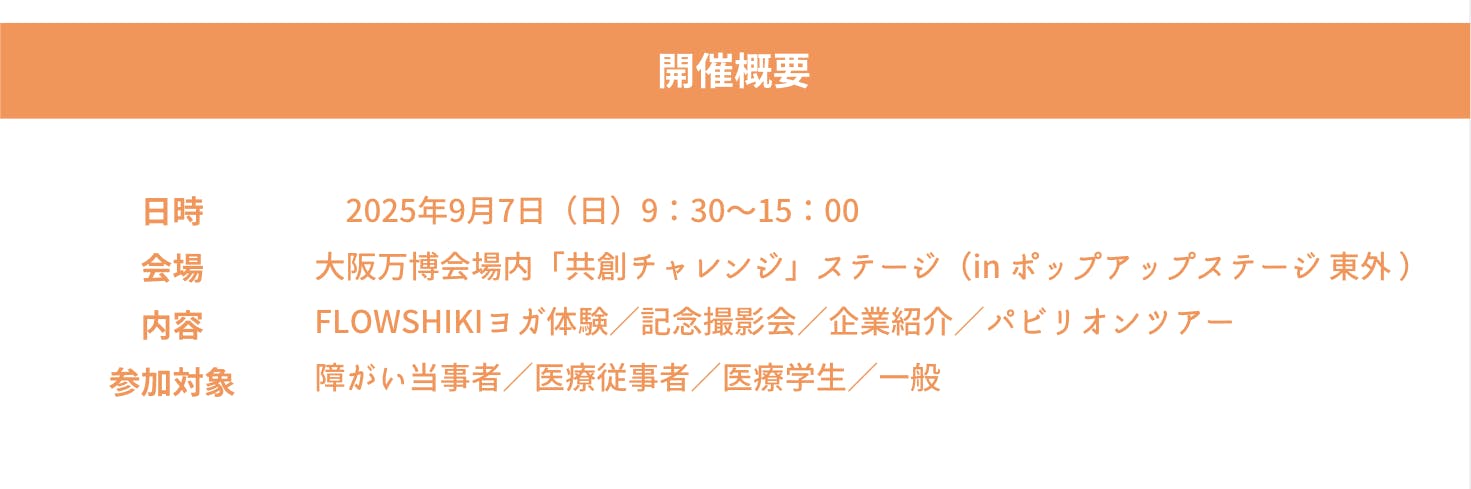 今回、私たちは、障がいをもった方々と医療介護福祉の方々総勢100名で大阪・関西万博2025年に参加し、「一歩踏みだすきっかけ」を提供する企画を開催いたします。