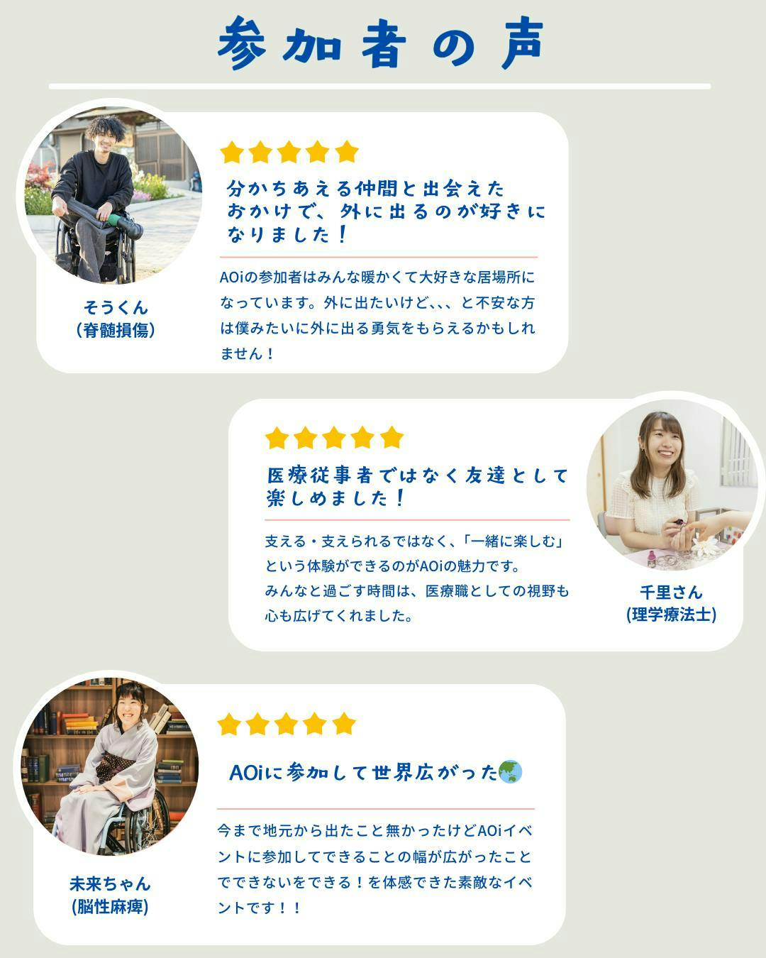 AOiは、障がい当事者のための団体ではありません。