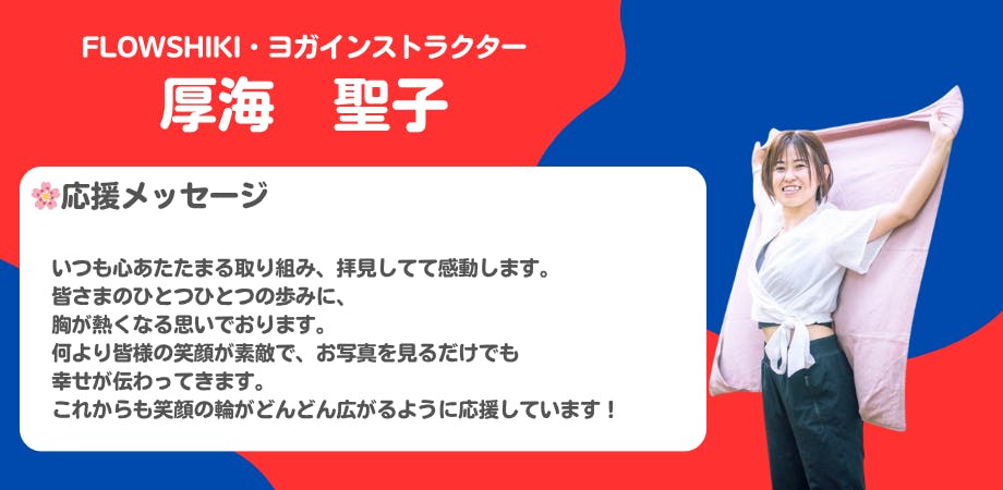 今日はFLOWSHIKIヨガインストラクターの厚海聖子さんの応援メッセージをご紹介します!