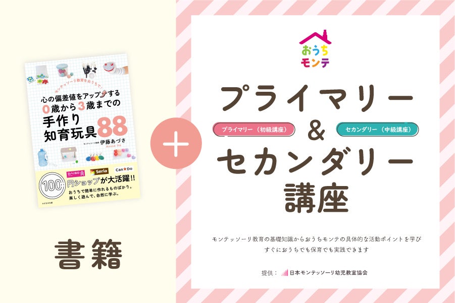本格的に学びたい方向けには、「おうちモンテ講師養成講座」(330,000円)や「プライマリー+セカンダリー講座」(100,000円)をご用意しました。