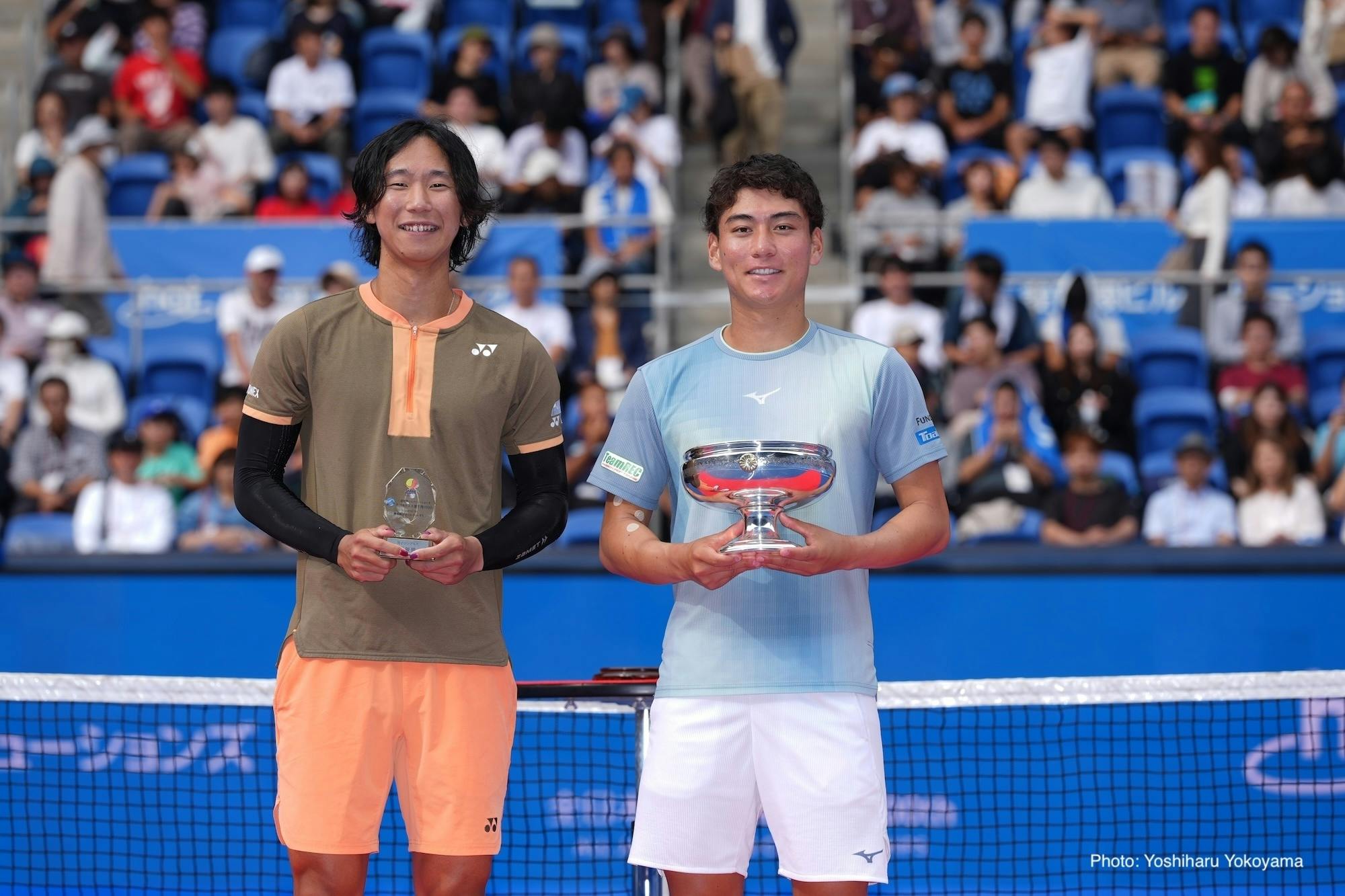 男子シングルス決勝は、田口涼太郎が市川泰誠を下し、大会初優勝。天皇杯を手にする