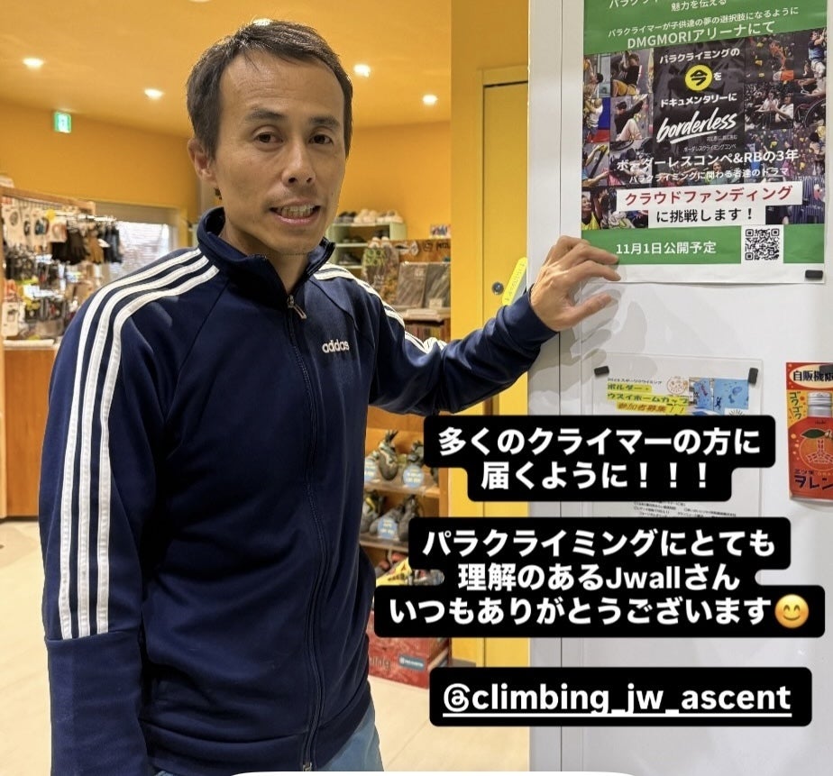 湘南Jwallのオーナーの守光様ポスター掲示ご協力下さいました。ありがとうございますパラクライミングにとても理解のあるジムです