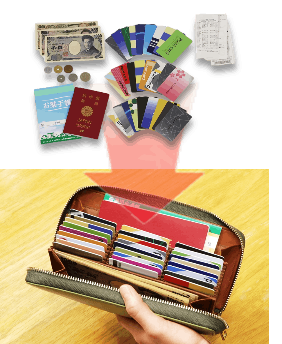 その一方で、実際にお財布に入れているカードの平均枚数はなんと半分の 10枚。つまり、一般的なお財布ではカードの持ち歩きに限界があるということなんです。