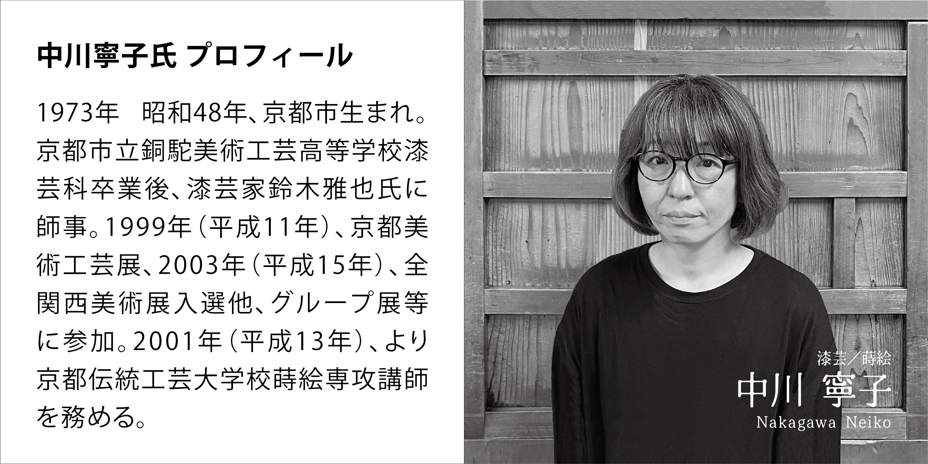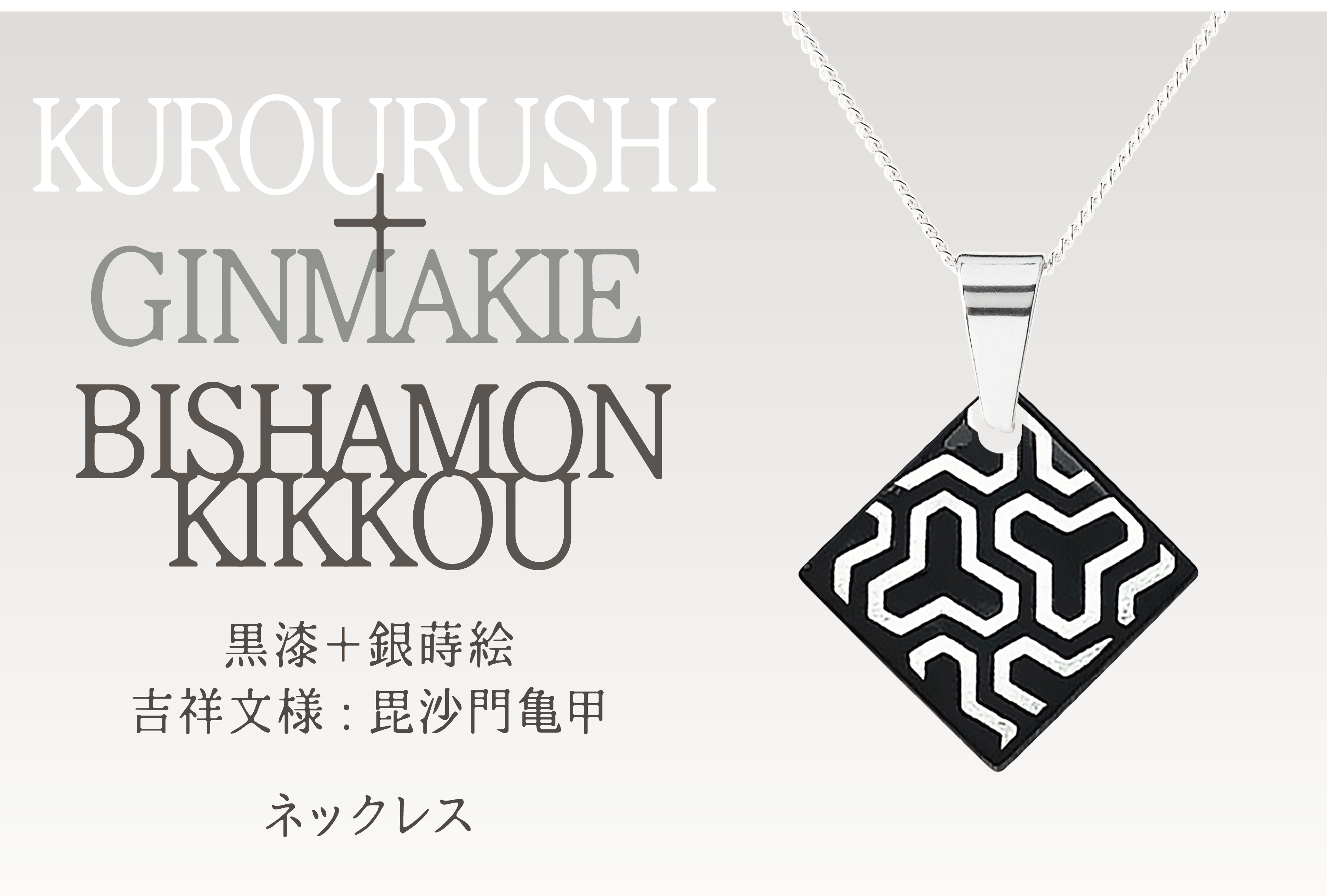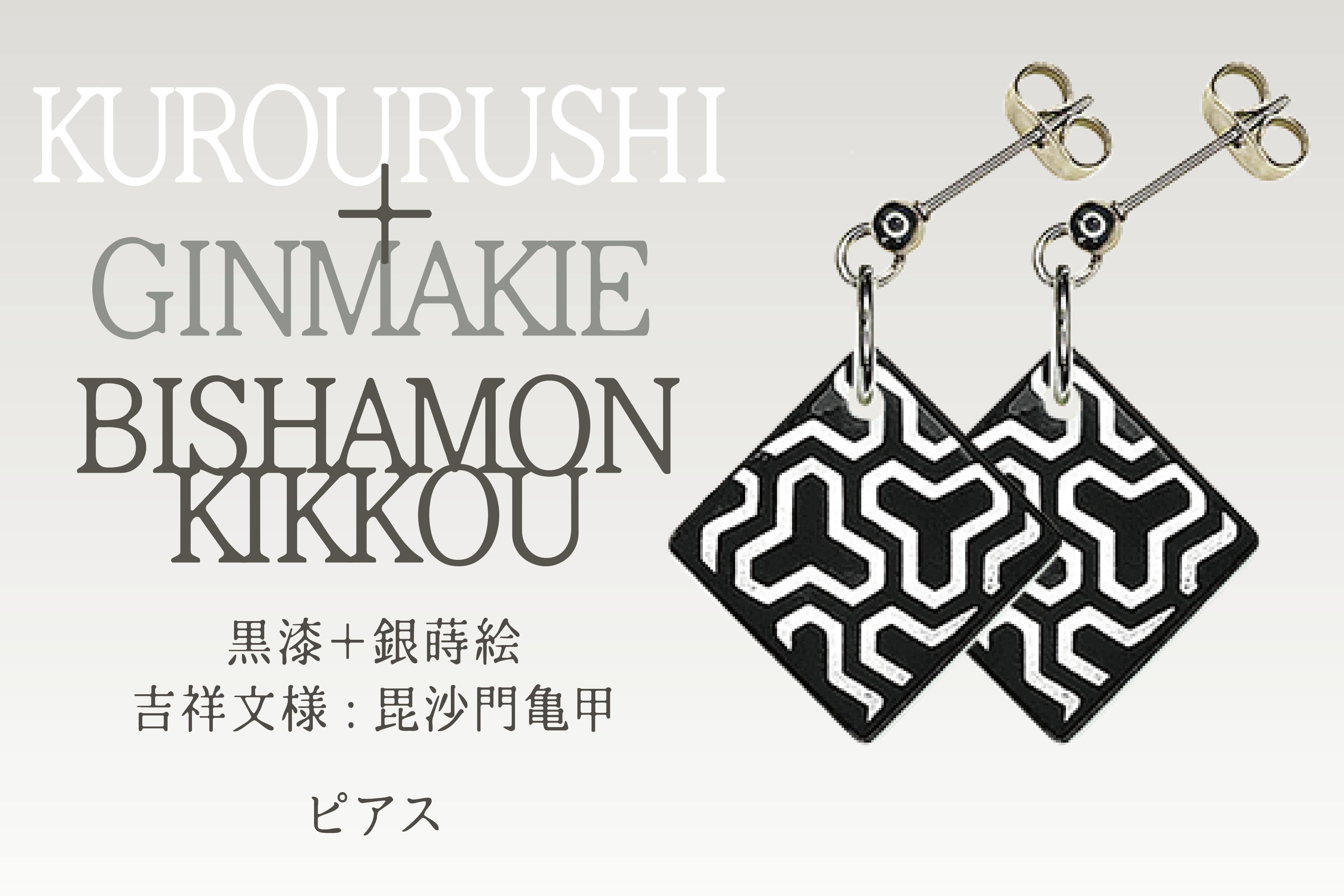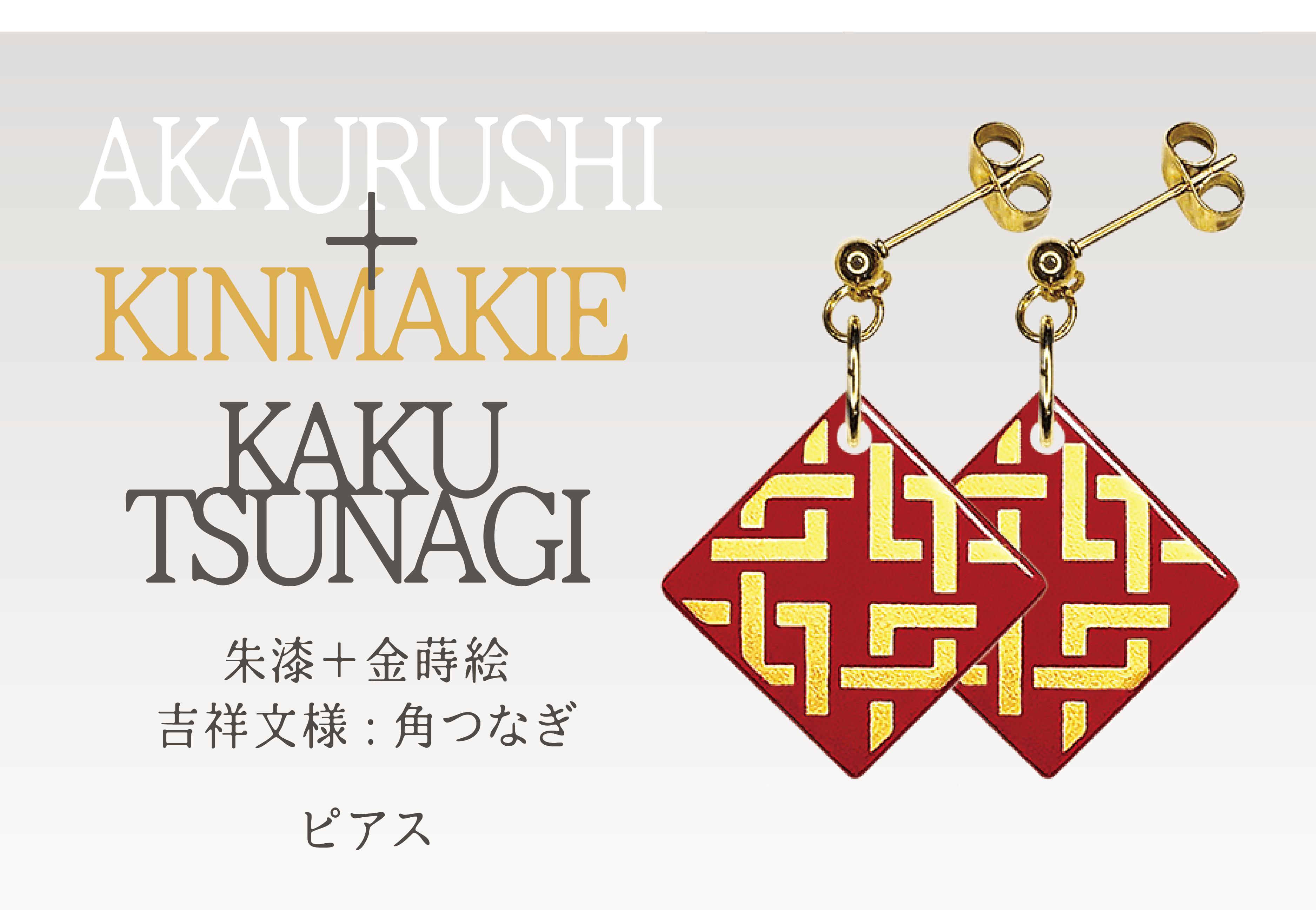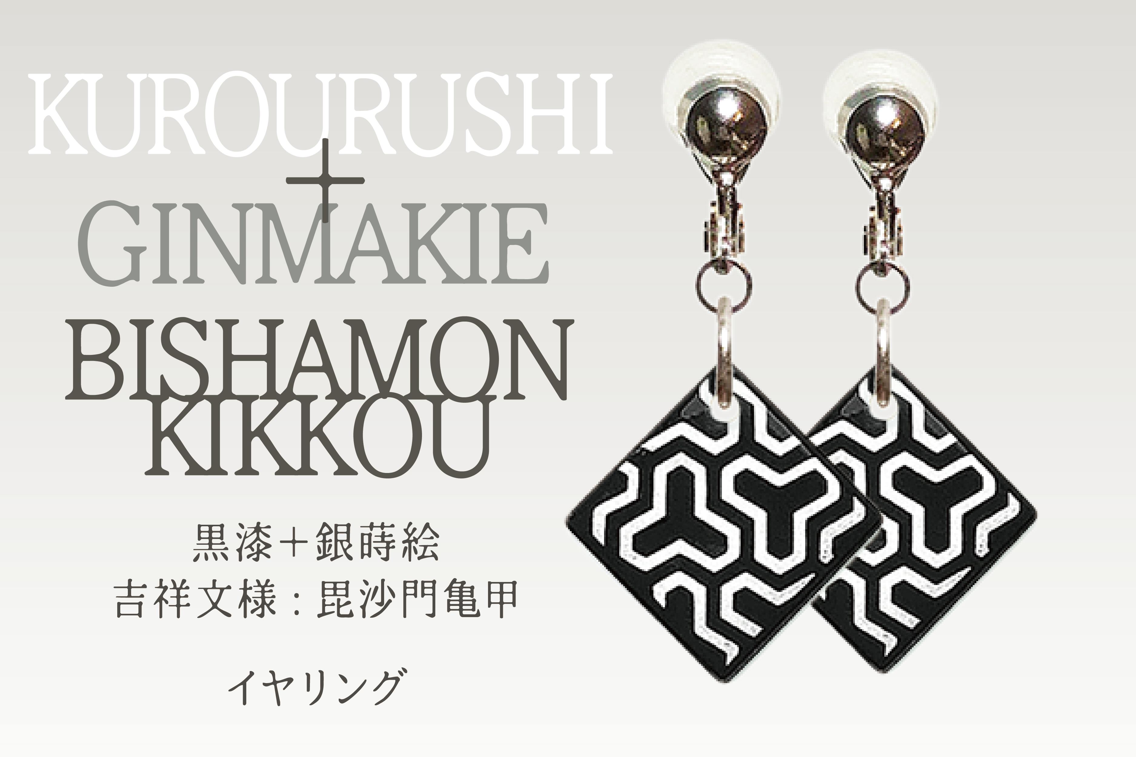 黒漆+銀蒔絵と朱漆+金蒔絵のアクセサリーを京都の蒔絵師に製作いただきます。下地はヒノキでとても軽量です。2種類のデザインをベースにピンブローチ・ネックレス・ピアス・イヤリングをそれぞれご用意しております。