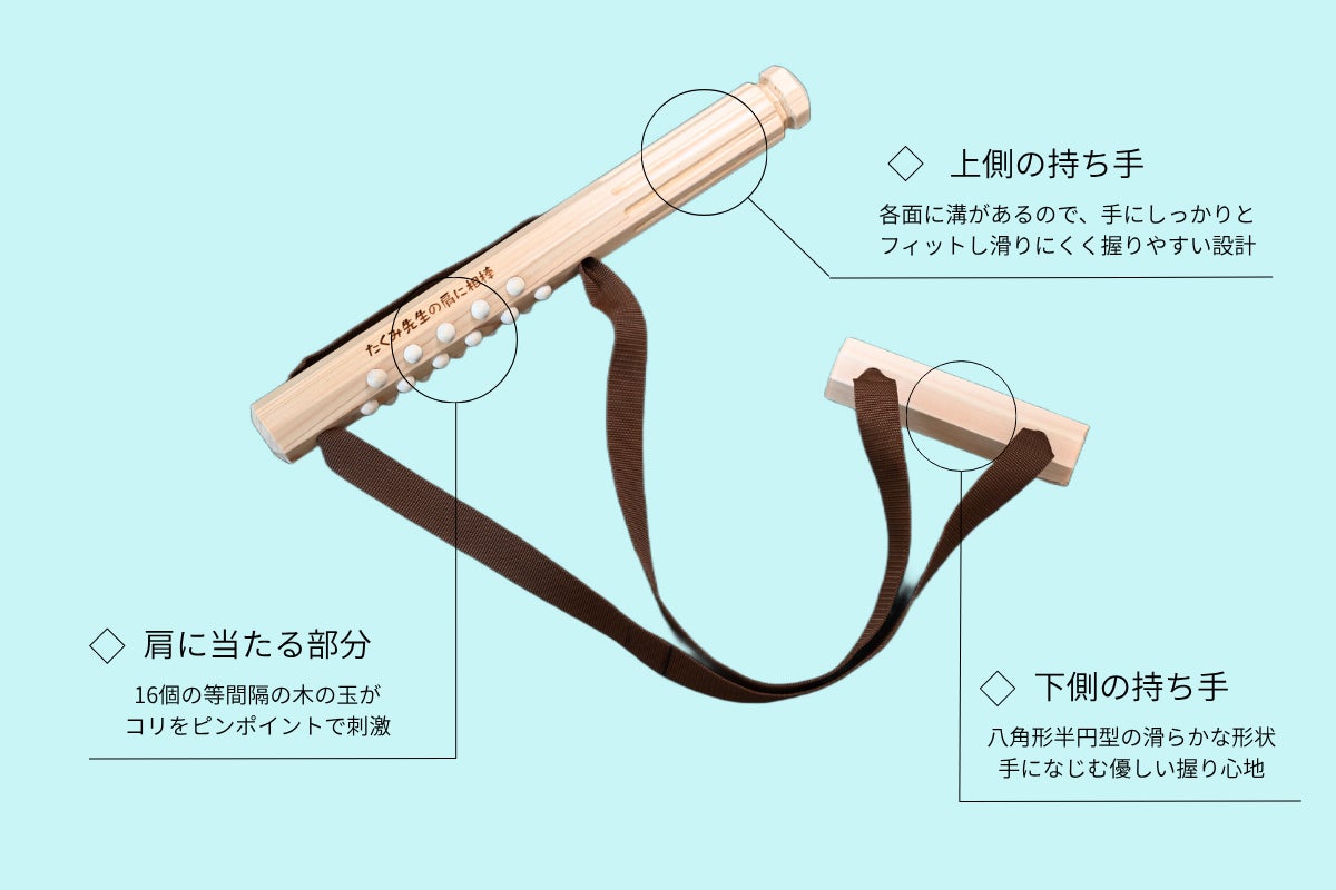 長年にわたり施術現場にて患者様に施術を行ってまいりました「棒の施術」を、自宅やオフィス、外出先でも一人で手軽に使える【肩まわりケア健康器具】として開発しました!
