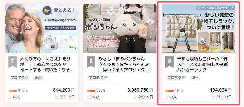 CAMPFIREランキングのプロダクト部門において、9位に入賞することができました。