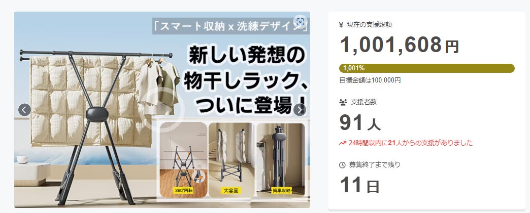 皆さま、こんにちは。この度は「干すも収納もこれ一台!省スペース&360°回転の革新ハンガーラック」にご支援頂き誠にありがとうございます!