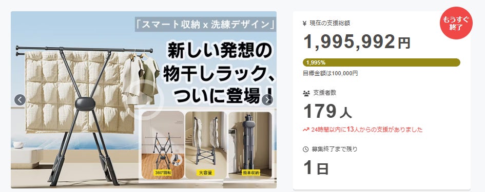このたびは【干すも収納もこれ一台!省スペース&360°回転の革新ハンガーラック】プロジェクトにご支援を賜り、誠にありがとうございます。