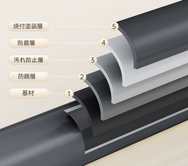 5層防護でサビ・剥がれを徹底ガード。高耐久コーティングにより、サビや塗装の剥がれを防ぎ、長期間の使用でも劣化しにくい。頑丈で耐久性に優れ、過酷な環境下でも性能を維持します。