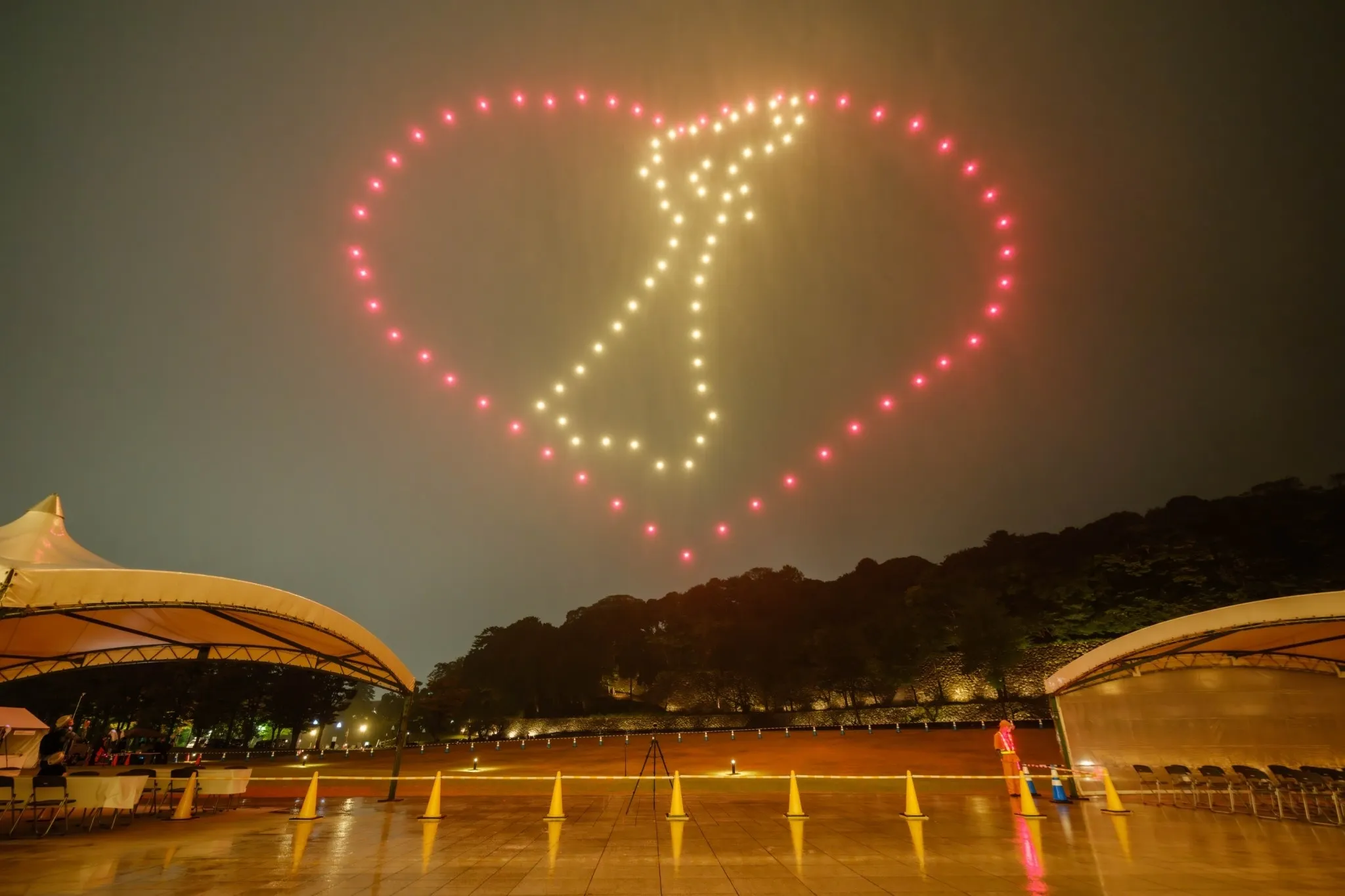 (『金沢プライドウィーク2024』プライドパレード前夜に実施したミニ・ドローンショーの様子 金沢で起業した株式会社ドローンショー・ジャパンのご協力で実現)