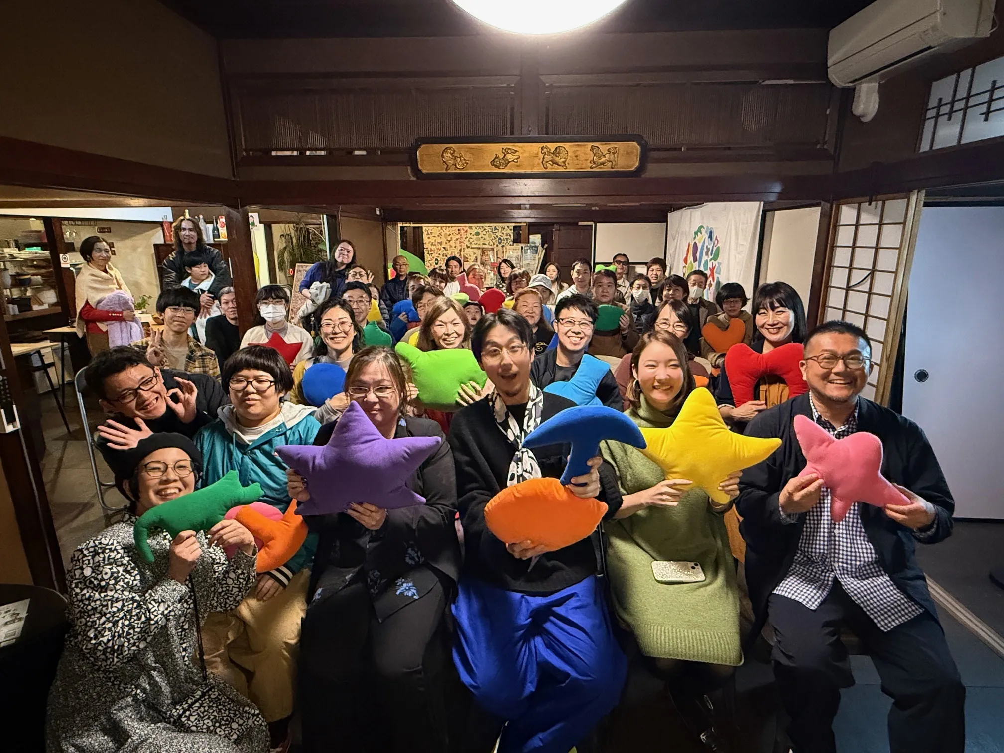 (「金沢にじのま」初の大型個展 Wajima Kanta & Kaede「びっくりぎょ展」の空間にて実施した、金沢DE&Iクリエイティブ・ギャザリング vol.4「障がいと仕事とクリエイティブ」の様子)