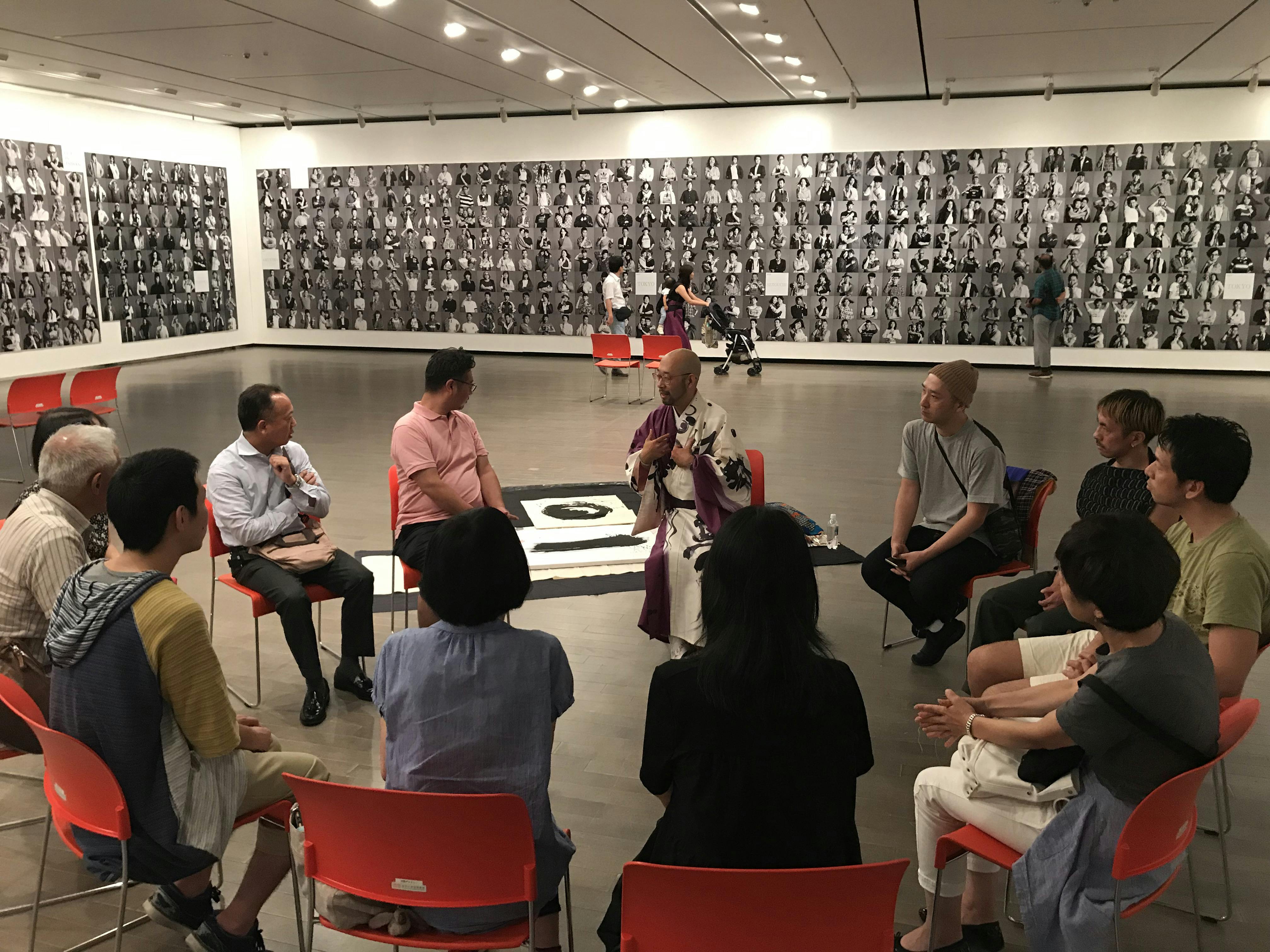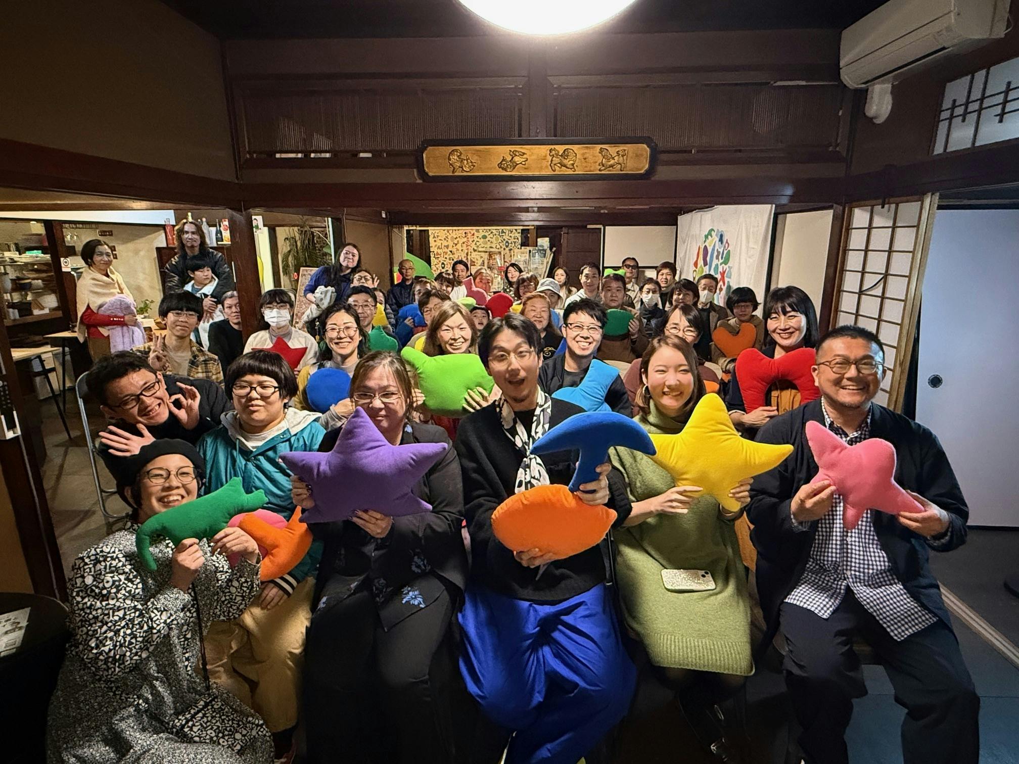 (「金沢にじのま」初の大型個展 Wajima Kanta & Kaede「びっくりぎょ展」の空間にて実施した、金沢DE&Iクリエイティブ・ギャザリング vol.4「障がいと仕事とクリエイティブ」の様子)